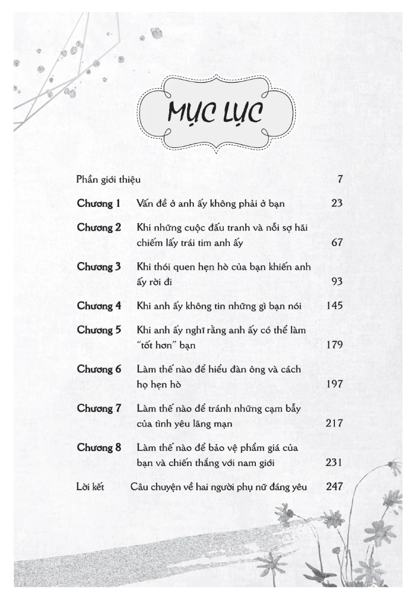 Bằng cách cung cấp các kỹ năng tiếp cận với suy nghĩ của đàn ông, cuốn sách giúp bạn dễ dàng nhận ra sự thúc đẩy tự nhiên trong ham muốn lãng mạn của một người đàn ông, đáp ứng nó một cách hiệu quả nhằm thu hút sự chú ý của người đàn ông phù hợp, và tránh các mối quan hệ đi vào bế tắc với những người không có hứng thú với bạn.