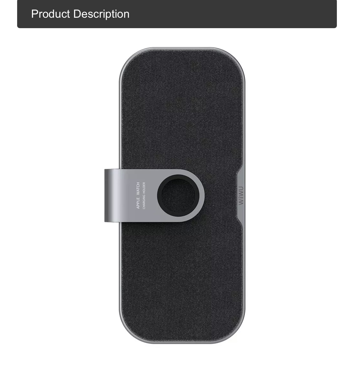 Thông số kỹ thuật: 1. Đầu vào: DC5V / 2.0A, tối đa 9V / 2.0A. 2. Công suất 1: 5W / 7.5W / 10W (điện thoại di động). Đầu ra 2: 2W (iWatch). 4. Chất