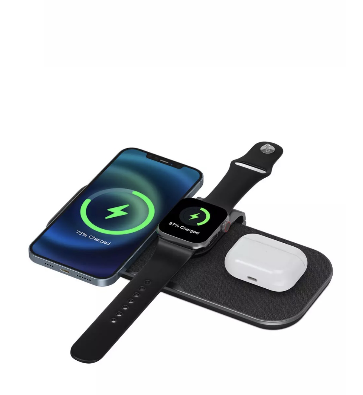 - Sạc 3 trong 1 sạc cùng lúc iP, Ap Watch, AirP tiện lợi - Công nghệ Qi2 MagS tương thích iP 12, 13, 14, 15 sạc nhanh hơn - Sạc không dây 15W tối ưu tốc độ sạc an toàn, hiệu quả - Thiết kế nam châm mạnh hít chặt, giữ thiết bị cố định chắc chắn - Gập gọn siêu di động dễ dàng mang theo, tiện lợi khi di chuyển