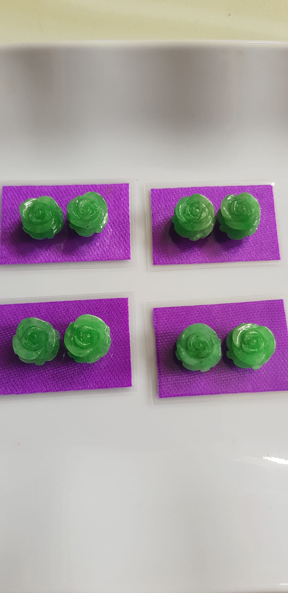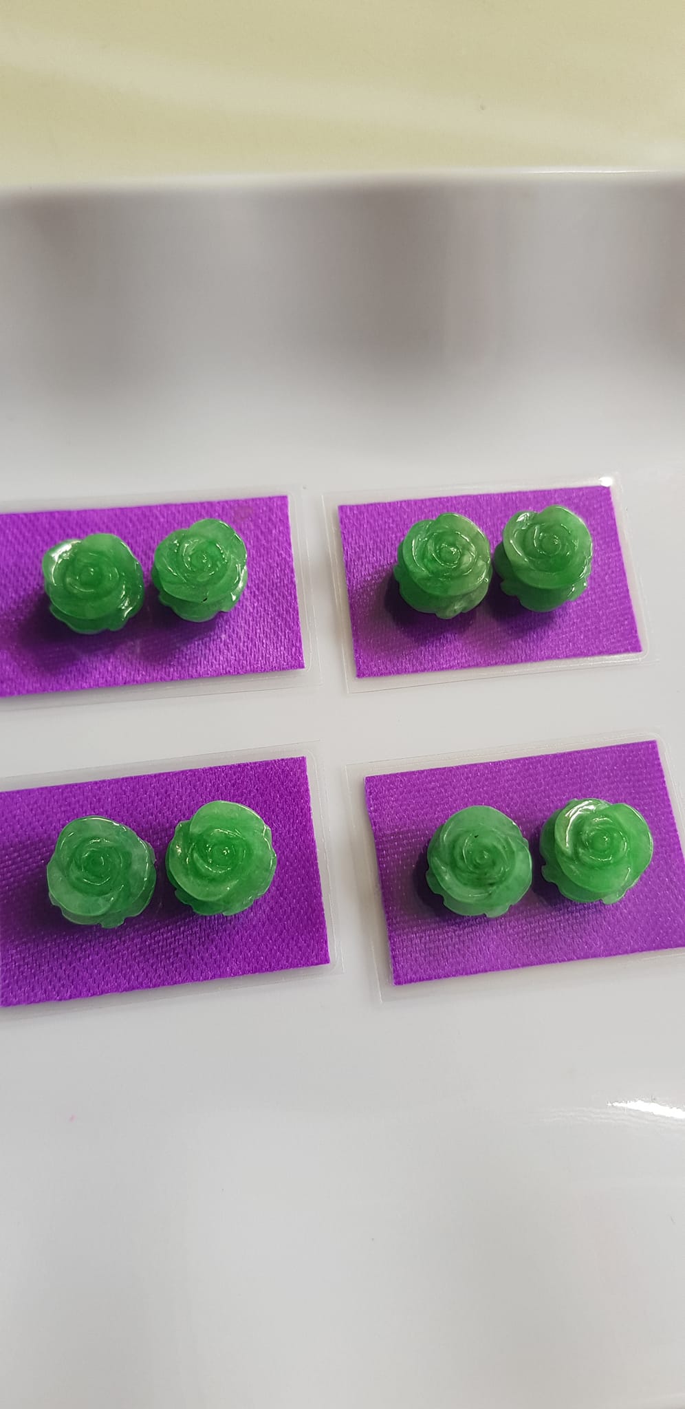 Đôi bông tai mới bông hồng nổi cao sịn đẹp xanh Ngọc tươi size đk 9,5mm x Cao 5mm Chất liệu đá ngọc cẩm thạch tự nhiên xanh ngọc tươi đều sịn bóng mượt đẹp