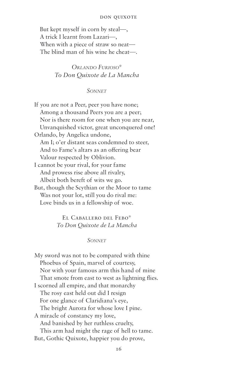 Renowned for its comical set pieces, Don Quixote is a profound meditation on the relationship between truth and fiction and the morality of deception, as well as the foundation stone of the modern novel.