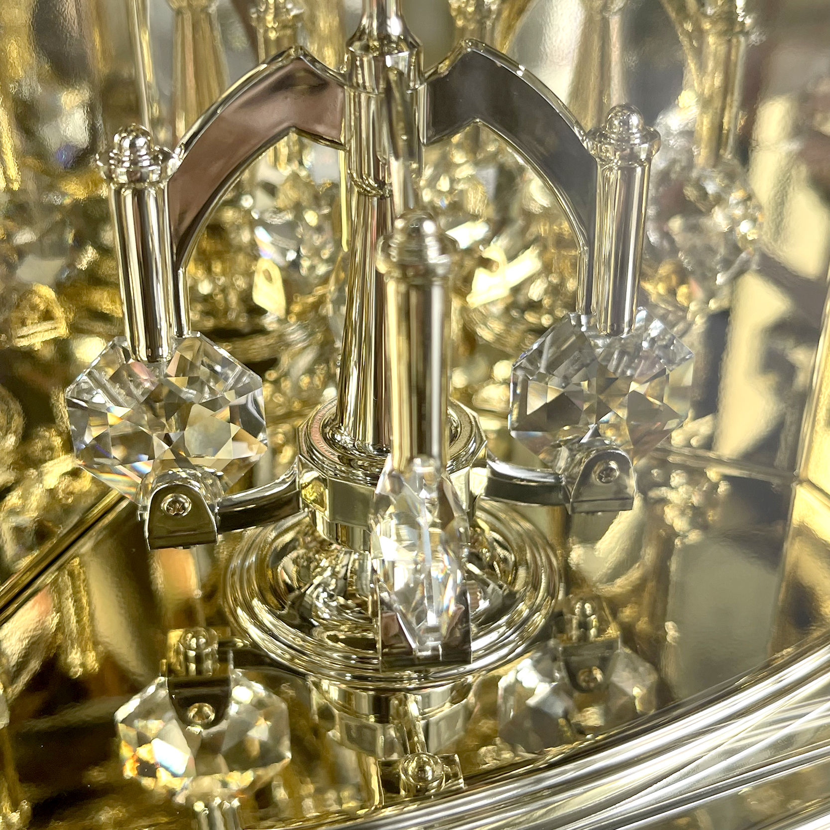 Đồng hồ để bàn Nhật Bản Rhythm 4RP796WS18, dùng pin (AAx2), vỏ nhựa cao cấp mạ vàng kết hợp mica trong suốt nhìn xuyên thấu, Kích thước 14.0 x 22.8 x 8.3cm, trọng lượng 390g. Quả