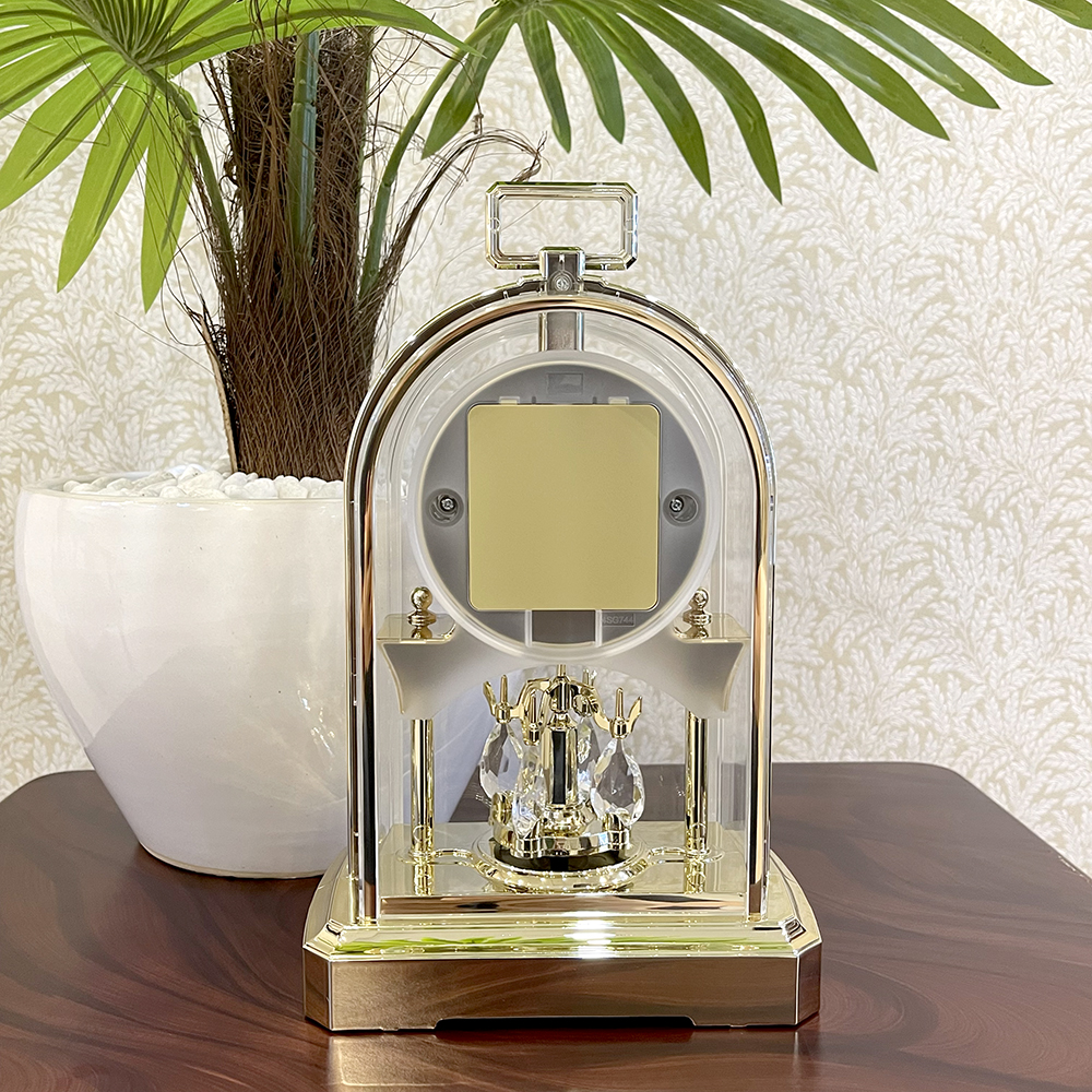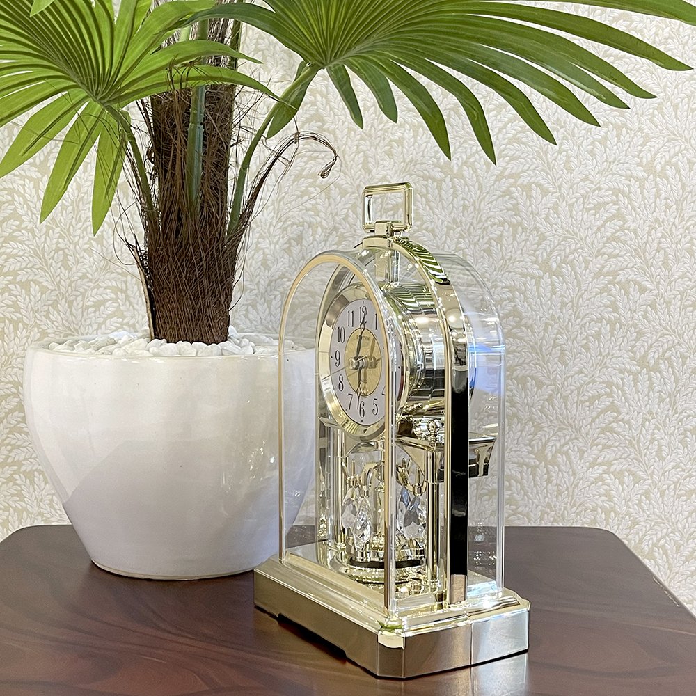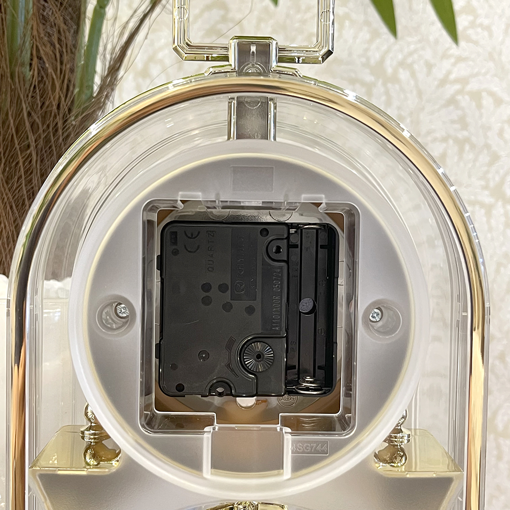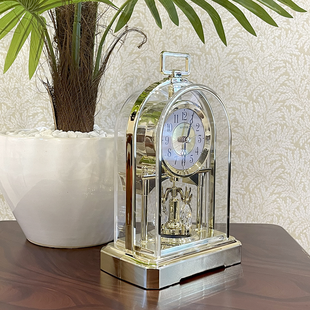 Đồng hồ để bàn Nhật Bản Rhythm 4RP796WS18, dùng pin (AAx2), vỏ nhựa cao cấp mạ vàng kết hợp mica trong suốt nhìn xuyên thấu, Kích thước 14.0 x 22.8 x 8.3cm, trọng lượng 390g. Quả