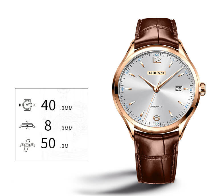Đồng hồ nam chính hãng LOBINNI Thụy Sỹ Thiết kế sang trọng, đẳng cấp cho quý ông Thời gian trữ cót lâu lên đến 40h Chống nước 5ATM, Kính sapphire Toàn bộ máy được làm