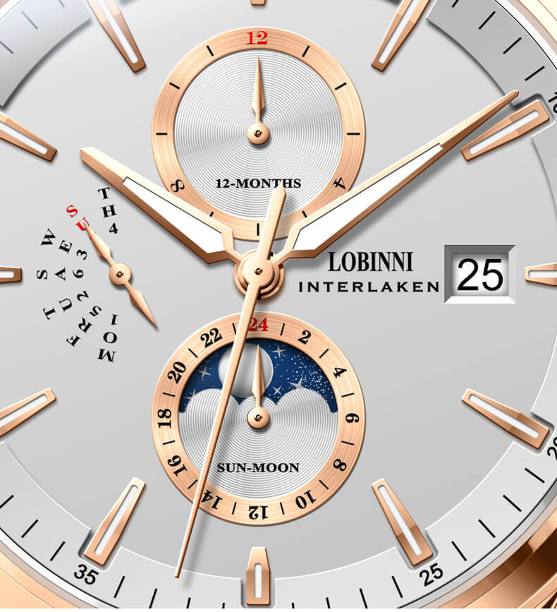 Đồng hồ nam chính hãng LOBINNI Thụy Sỹ Thiết kế sang trọng, đẳng cấp cho quý ông Thời gian trữ cót lâu lên đến 40h Chống nước 5ATM, Kính sapphire Toàn bộ máy được làm