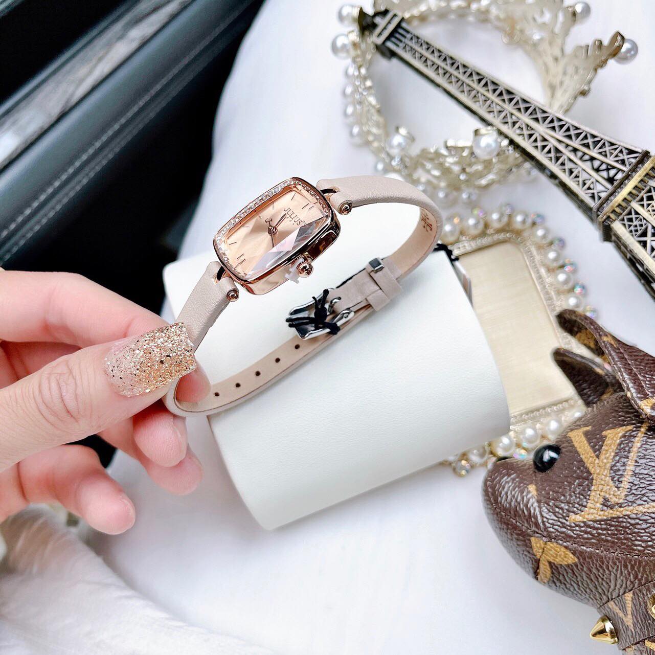 Đồng hồ Julius Ja-1341 mặt chữ nhật đính đá siêu xinh