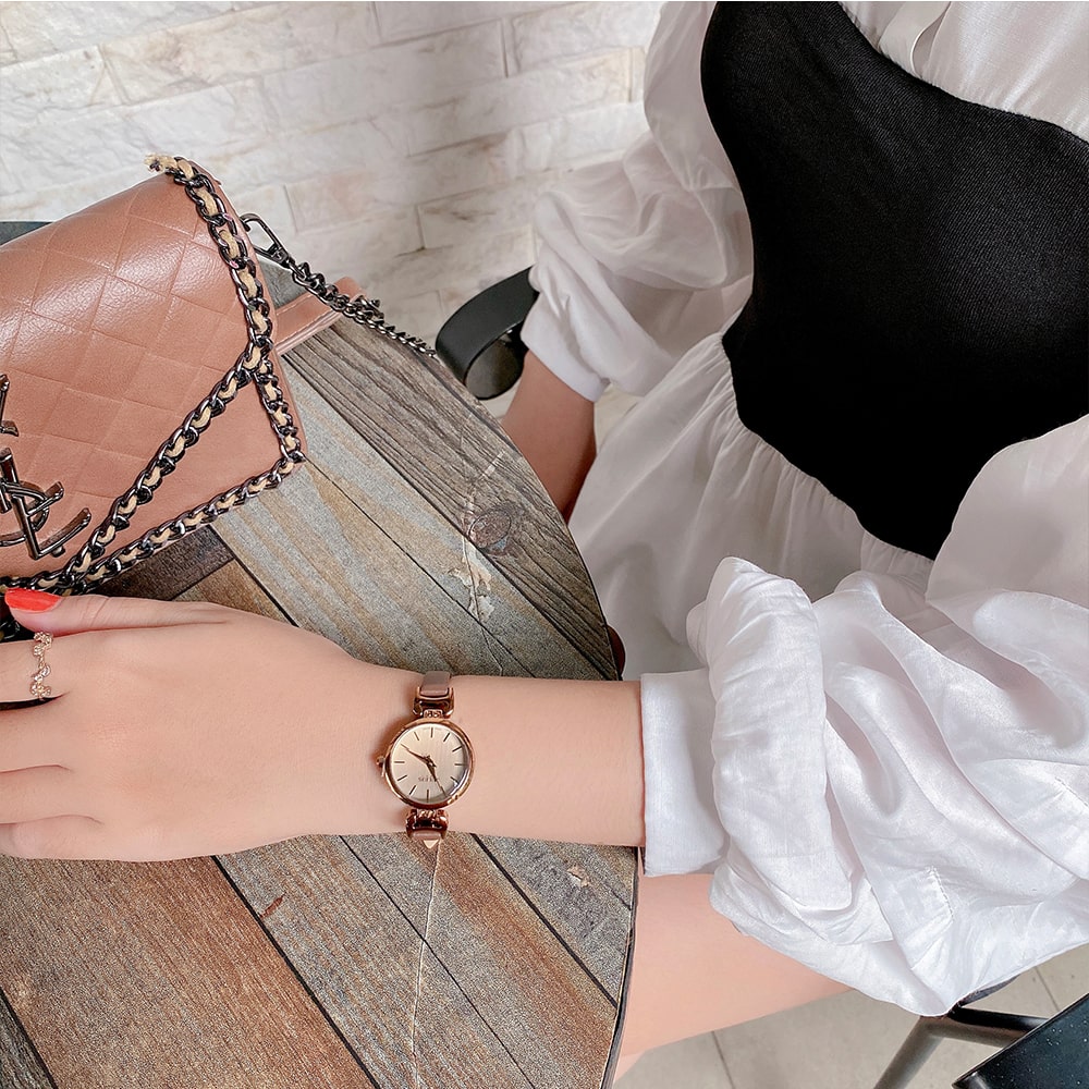 Chiếc đồng hồ thích hợp với các bạn nữ yêu thích sự trẻ trung, quyến rũ và với thiết kế nhỏ nhắn nhẹ nhàng cho nữ giới dây da tối màu giúp bạn dễ phối