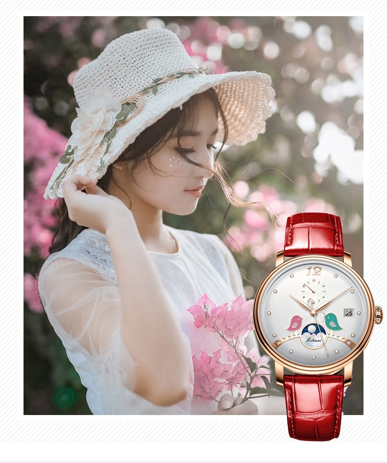 Đồng hồ nữ chính hãng Lobinni Thụy Sỹ Thiết kế hiện đại,sang trọng dành cho phái nữ Thời gian trữ cót lâu lên đến 40h Chống nước 5ATM, Kính sapphire Toàn bộ máy được làm