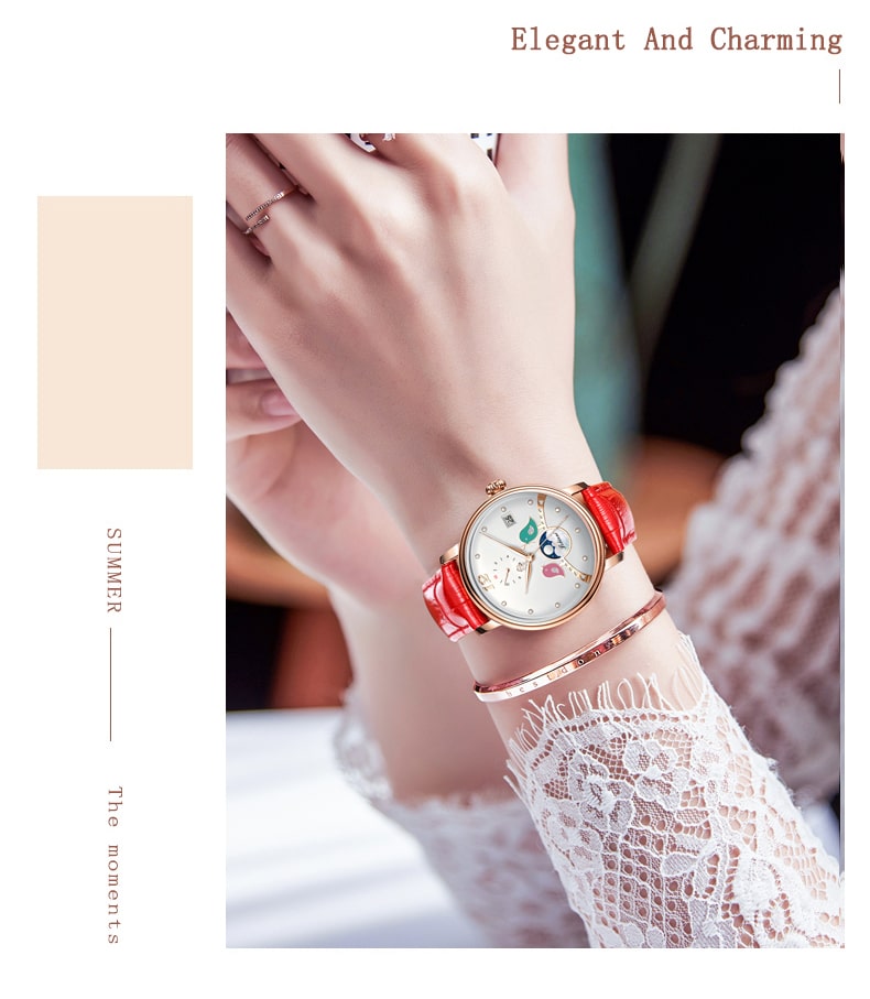 Nhãn hiệu LOBINNI Mã sản phẩm No.027-5 Giới tính Nữ Kiểu máy Đồng hồ cơ (Automatic) Đường kính mặt 36 mm Độ dày 10 mm Chất liệu vỏ Thép không gỉ 316L Chất liệu dây Dây da cao cấp Chất liệu mặt kính Sapphire