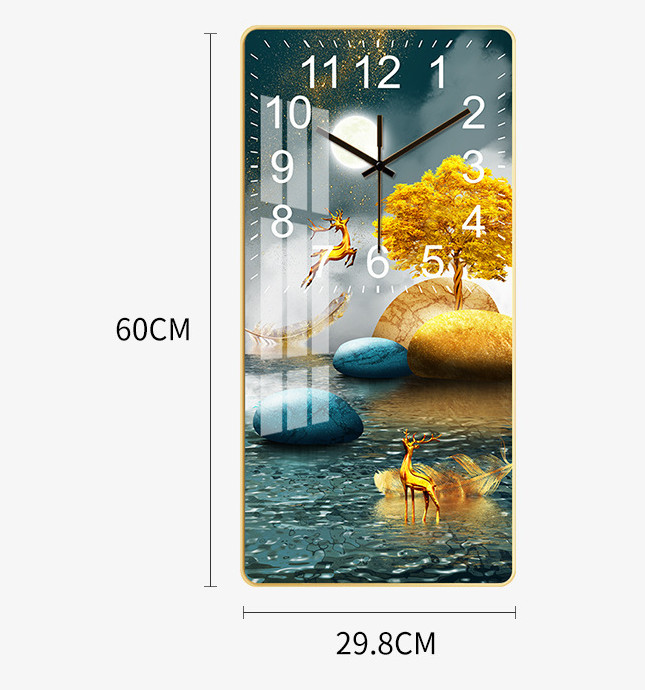 Tranh đồng hồ hươu vàng tài lộc - Kích thước của tranh : 35x70cm - 45x90cm -55x110cm-60x120cm - Khác h hàng muốn thay đổi sản phẩm tùy ý như: kích thước, màu sắc kim đồng