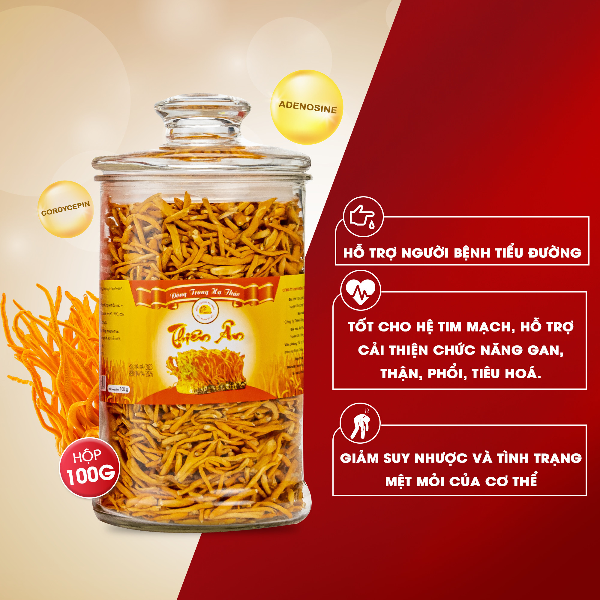 ✨Đông Trùng Hạ Thảo Sấy Thăng Hoa Thiên Ân - Hũ 100g