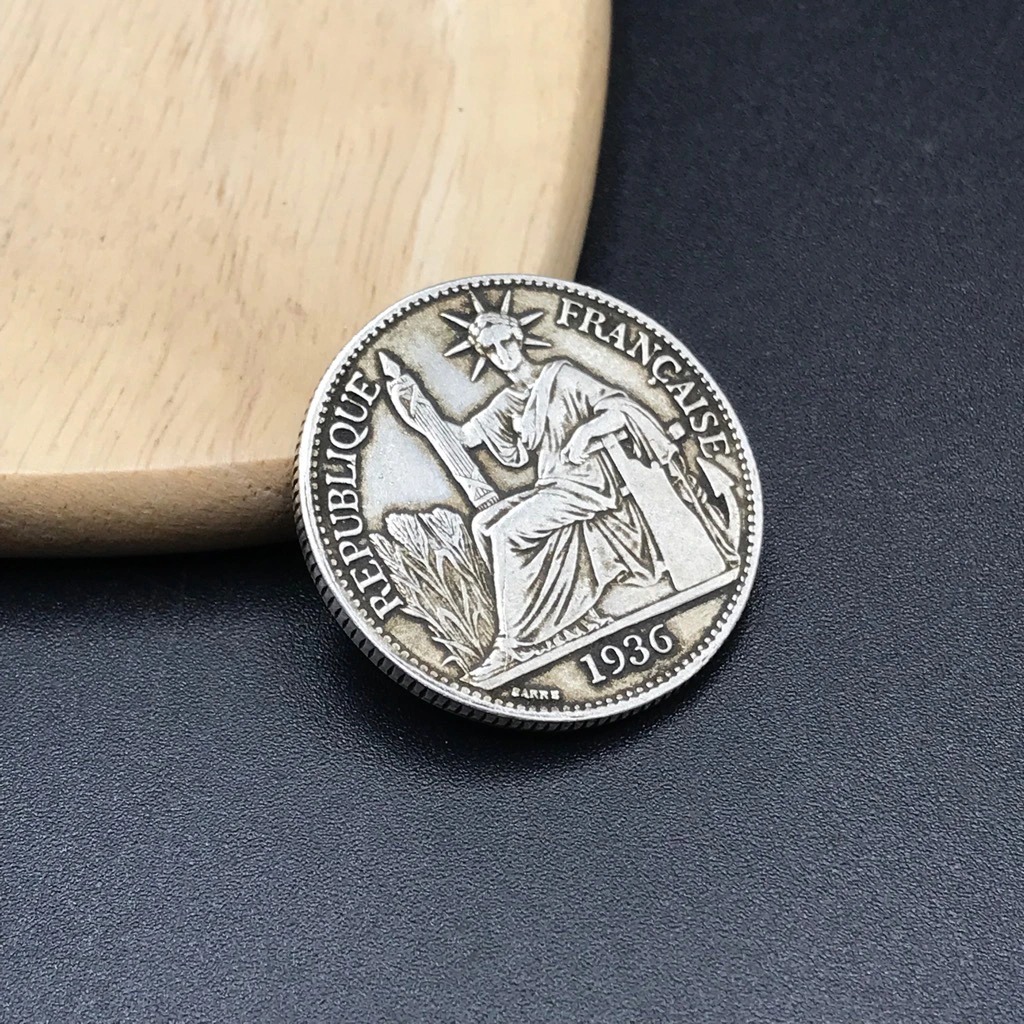 Đồng Xu Hoa Xòe Đánh Gió Đông Dương Hình Bà Đầm Cũ Bạc Ta 50 Cent BẠC HIỂU MINH DDD002C