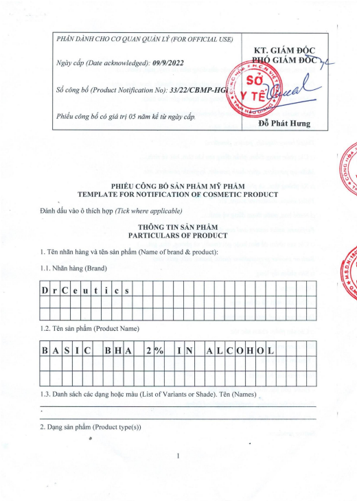 Thông tin sản phẩm • Thương hiệu: Dr Ceutics • Xuất xứ: Việt Nam DRCEUTICS Dung Dịch Loại Bỏ Tế Bào Chết Basic BHA 2% In Alcohol (100ml - 200ml) Là sản phẩm chứa 2%