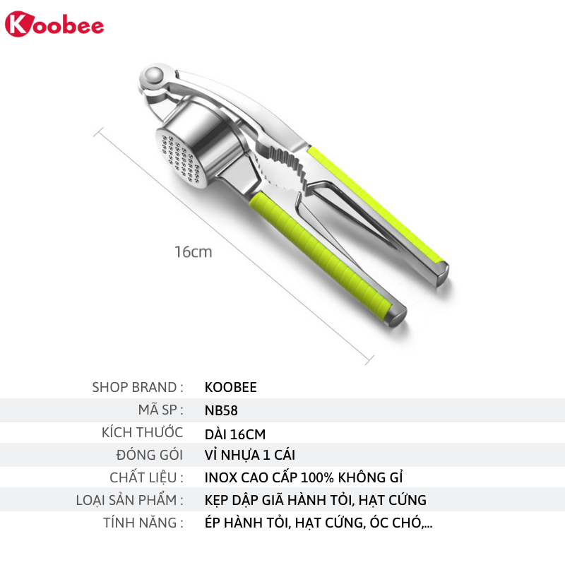 TÊN SẢN PHẨM: Dụng cụ ép tỏi, kẹp hạt cứng cầm tay cao cấp INOX 100% chắc chắn bền đẹp (NB58) THÔNG TIN SẢN PHẨM - Quy cách đóng gói: 1 cái - Chất liệu:
