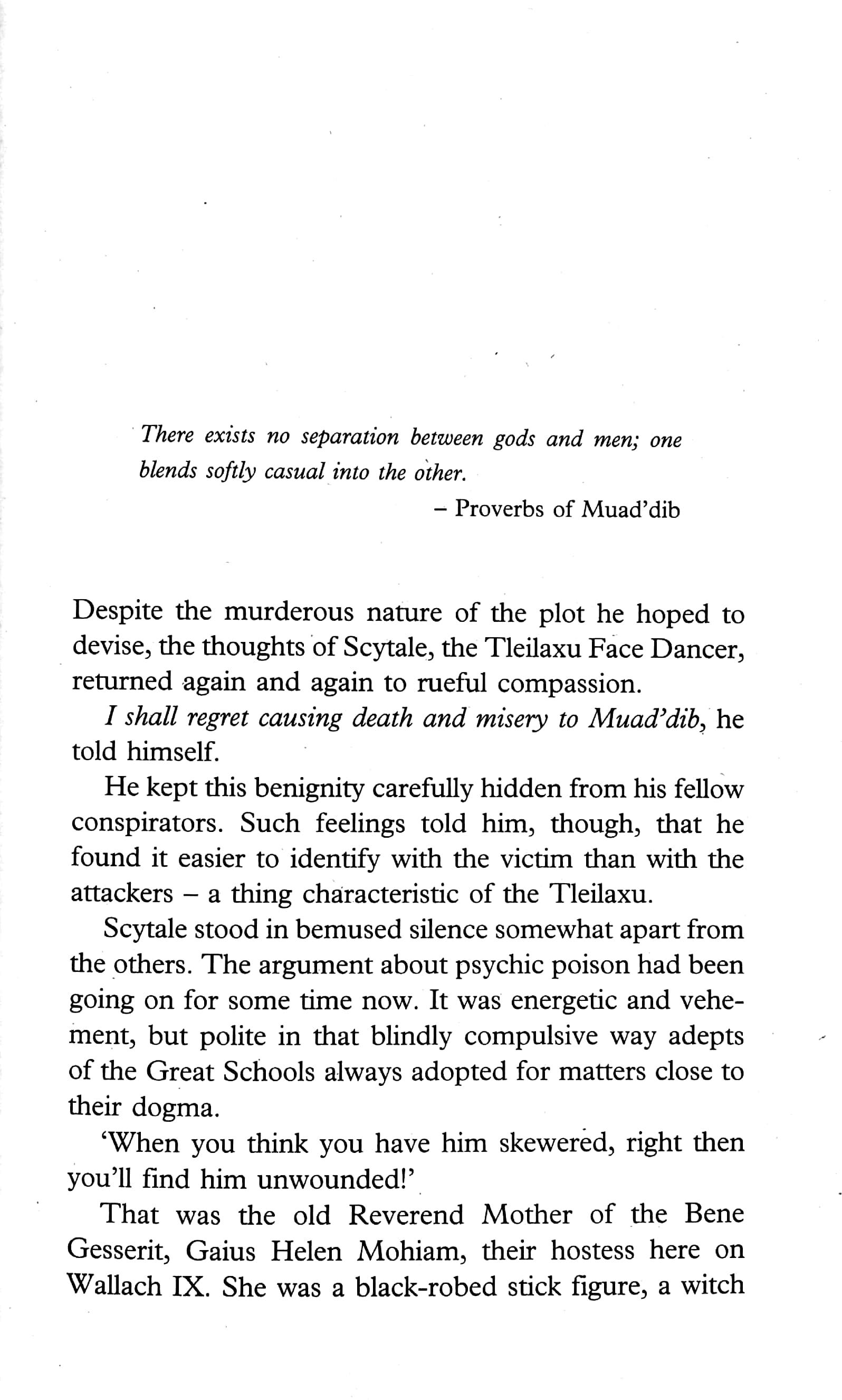 While former allies conspire to dethrone Paul and even his own consort acts against him, Paul accepts a gift from the Tleilaxu, a guild of genetic manipulators, hoping to find a single spark of peace and friendship amidst the betrayal and chaos. But this act undermines Paul's support from the Fremen, his own people. The Fremen are the true source of Paul's power; losing them is the one thing that could truly topple his empire.