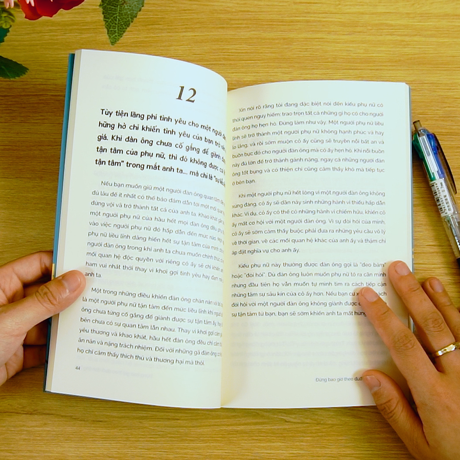 “Gió tầng nào gặp mây tầng đó”. Các nguyên tắc trong cuốn sách này được thiết kế để giúp bạn hấp dẫn hơn với những người đàn ông bằng cách cải thiện cách bạn ứng xử trong các giai đoạn hẹn hò khác nhau. “Đừng bao giờ theo đuổi đàn ông” chắc chắn khai sáng giá trị của bạn được bộc lộ ra ngoài và cuối cùng, bạn nhất định gặp được những người đàn ông chân ái của cuộc đời mình.