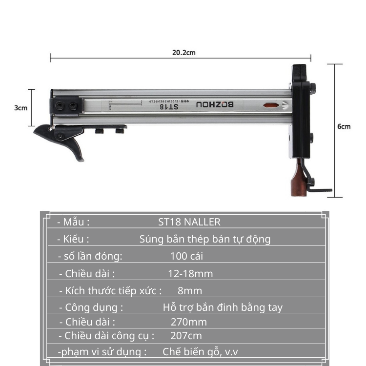 Mua tại TiktokMô hình: Máy đóng đinh bằng tay ST18 Kiểu: máy đóng đinh thép bán tự động Số lượng ràng buộc: 100 miếng Chiều dài móng: 12-18mm Tiếp quản kích thước: 8mm Chiều dài: 207mm Chiều dài dụng cụ: 207cm Mô hình: máy đóng đinh tự động bật lại ST18B Kiểu: máy đóng đinh thép bán tự động Số lượng ràng buộc: 100 miếng Chiều dài móng: 10-30mm Tiếp quản kích thước: 8mm Chiều dài: 207mm Mô hình: ST38 Kiểu: máy đóng đinh thép bán tự động Số lượng ràng buộc: 70 miếng Chiều dài móng: 12-38mm Tiếp quản kích thước: 1mm