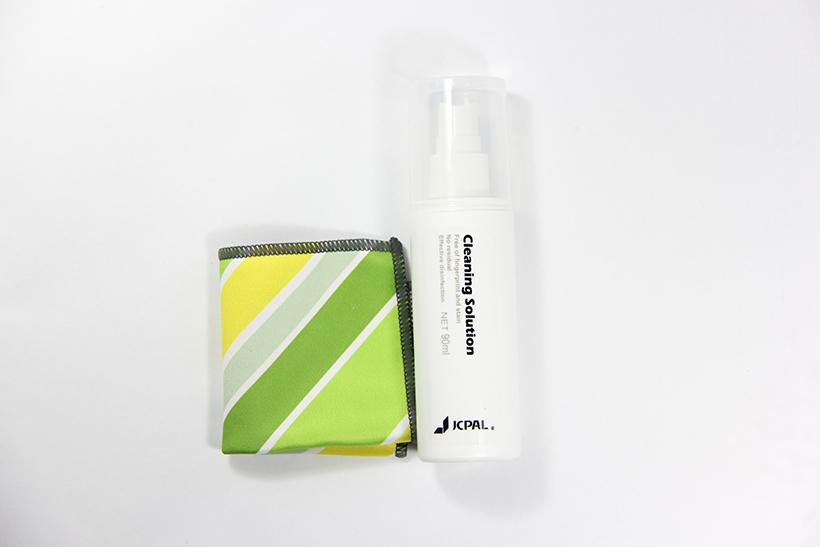 Tặng kèm khăn lau chùi chuyên dụng làm bằng công nghệ Microfiber với các sợi tổng hợp nhỏ nhằm tăng cường khả năng làm sạch mà không gây trầy xước dù nhỏ nhất. Thành phần của khăn làm sạch JCPAL gồm: