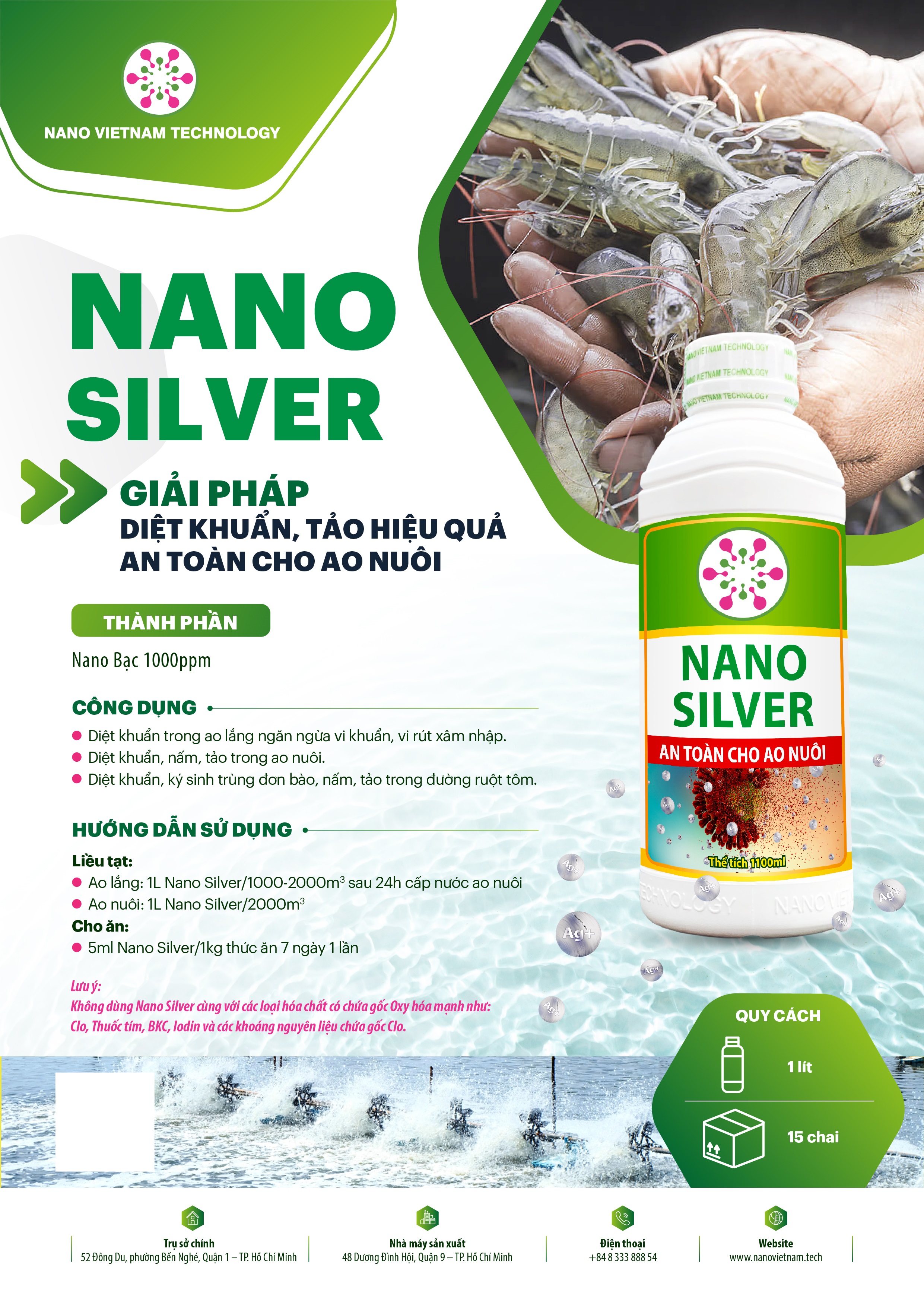 NANO BẠC - NANO SILVER - Xử lý nguồn nước ao nuôi, diệt nấm, vi khuẩn, hỗ trợ ngừa bệnh cho tôm, cá - Nano Bạc bao gồm các hạt bạc được tán nhỏ ra