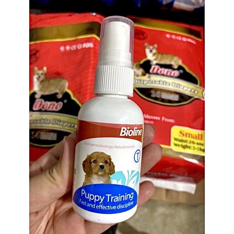 - Dung dịch xịt hướng dẫn chó mèo đi vệ sinh đúng chỗ Bioline Puppy Training là sản phẩm của Bioline, một thương hiệu lớn và nổi tiếng chuyên sản xuất và kinh doanh các loại phụ kiện dành cho thú cưng như: dầu gội đầu, dây xích chó, đồ chơi thú cưng, nhà ở vật nuô Sản phẩm được phân phối ở nhiều nước trên toàn thế giới.