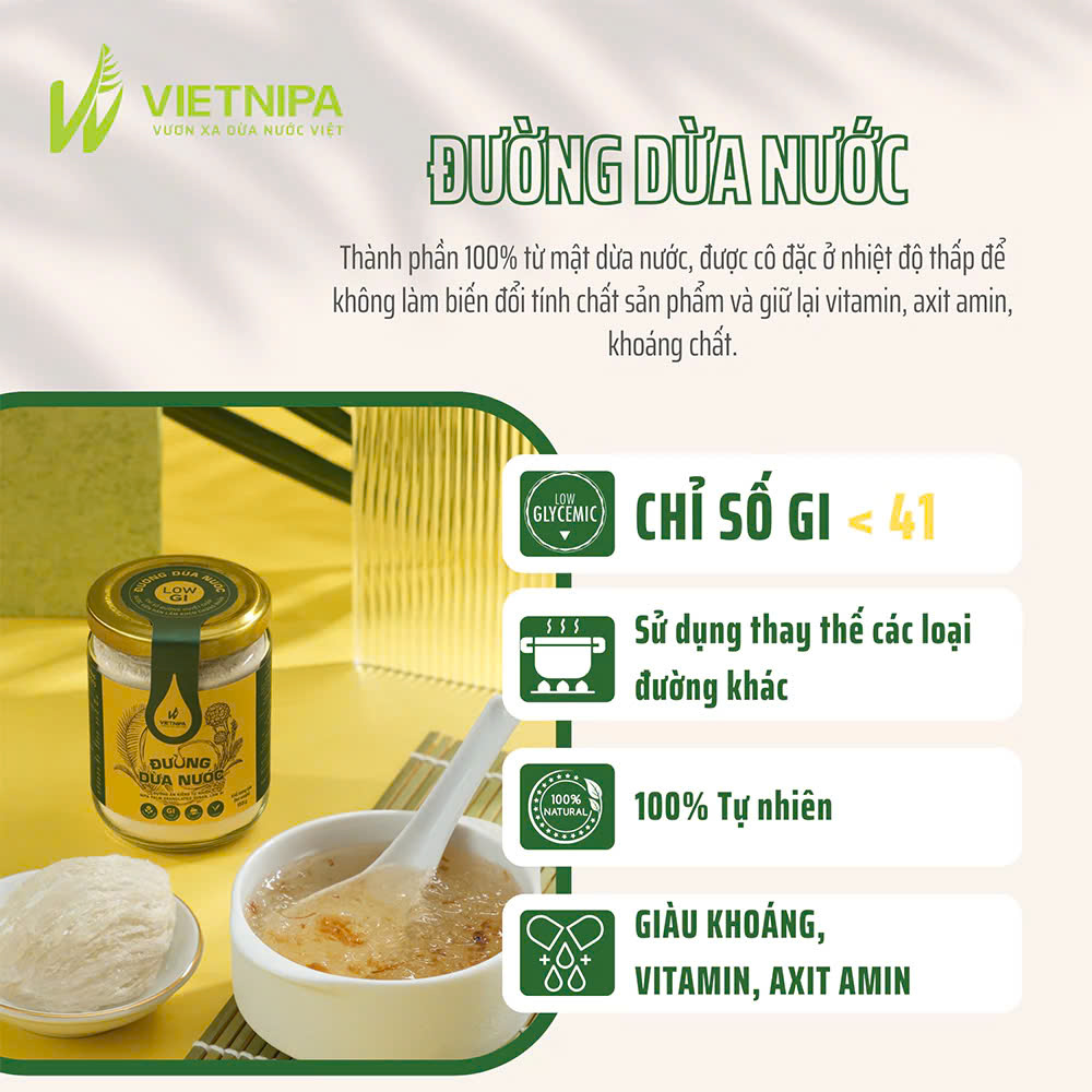 ✨Đường Dừa Nước Vietnipa 150g - Người Tiểu Đường, Ăn Kiêng, Hàm Lượng Vitamin Và Muối Khoáng Cao