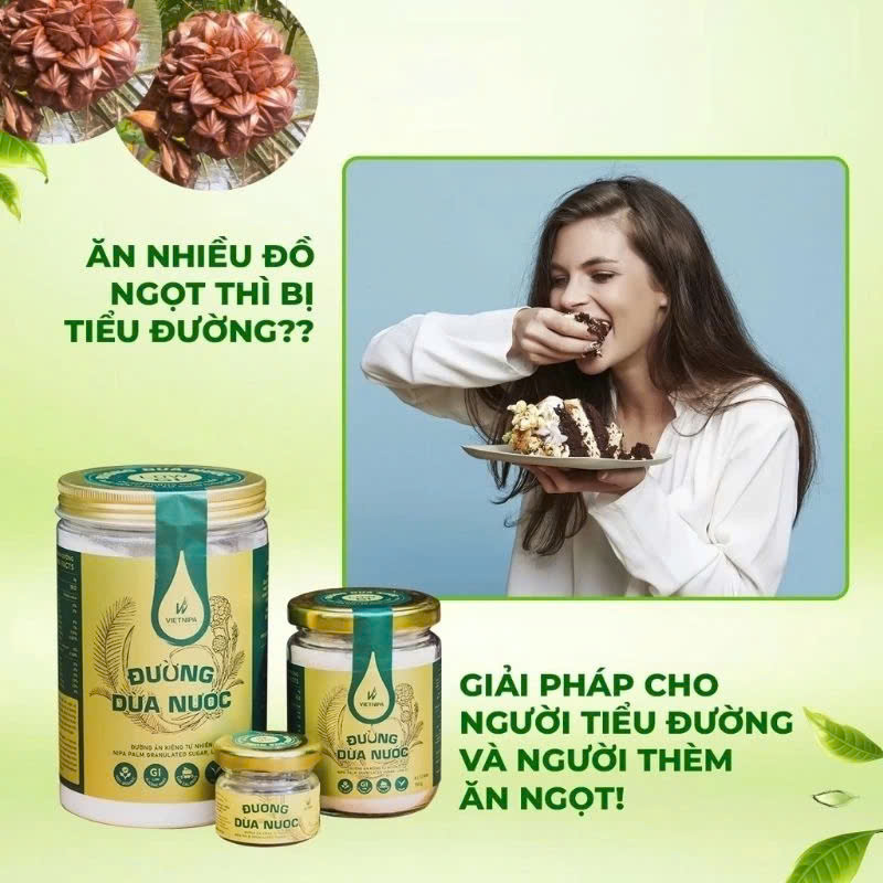 - Phù hợp với người bị tiểu đường, người ăn kiêng: Đường Dừa Nước được chế biến hoàn toàn từ Mật Dừa Nước Cô đặc, đã được Viện Hàn lâm Khoa học và Công nghệ chứng nhận có chỉ số đường huyết thấp (GI = 17). Vì thế rất phù hợp với người ăn kiêng và tiểu đường type 2.