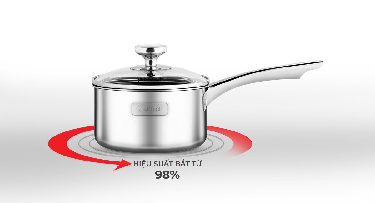 Lớp ngoài cùng tiếp xúc với mặt bếp là inox 430 cho hiệu suất bắt từ lên đến 98%, giúp tiết kiệm nhiên liệu và thời gian tối đa khi nấu. Cũng nhờ có lớp đáy từ, quánh Trimax dùng được trên mọi loại bếp bao gồm bếp từ, bếp hồng ngoại, bếp gas,…