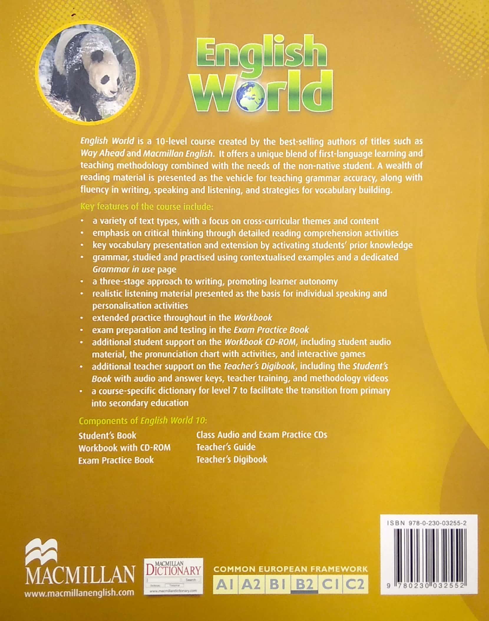 English World is a stunningly visual ten-level course which will take children through from primary to secondary. Written by the authors of best-sellers Way Ahead and Macmillan English, English World combines best practice methodology with innovative new features for the modern classroom. Active whole-class learning is supported by interactive activities on the WB CD-ROM. Thorough grammar and skills work is applied in natural contexts in the real world, through dialogues and cross-curricular material. English World provides a complete package for today's teachers and students. Key features Innovative Teacher's DVD-ROM with teaching methodology videos, teacher training videos and interviews with the course authors as well as the complete digitised Student's Book with Answer Keys, accessible audio and zoomable activities Informative, cross-curricular and cross-cultural content means that students learn about the world through English The stories, topics and projects promote social values and citizenship Systematic skills support and extension in the Workbook helps students develop learning strategies Level 7 has a specially written Dictionary designed to ease the transition from primary to secondary education