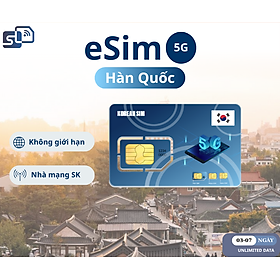 ✨eSIM du lịch Hàn Quốc – 3/5/7 Ngày, 1GB/2GB/3GB/ngày + Dữ liệu không giới hạn