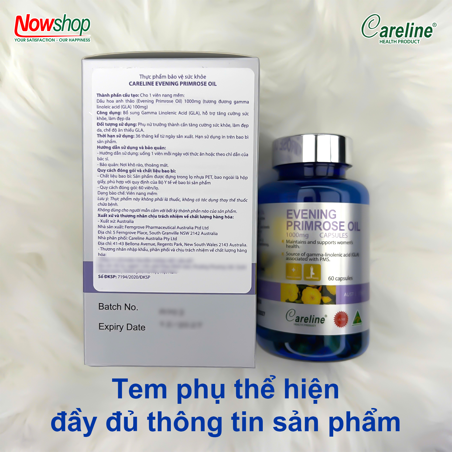 Tinh dầu Hoa Anh Thảo Evening Primrose Oil Careline - Cân bằng nội tiết tố nữ, giảm mụn, làm sáng da