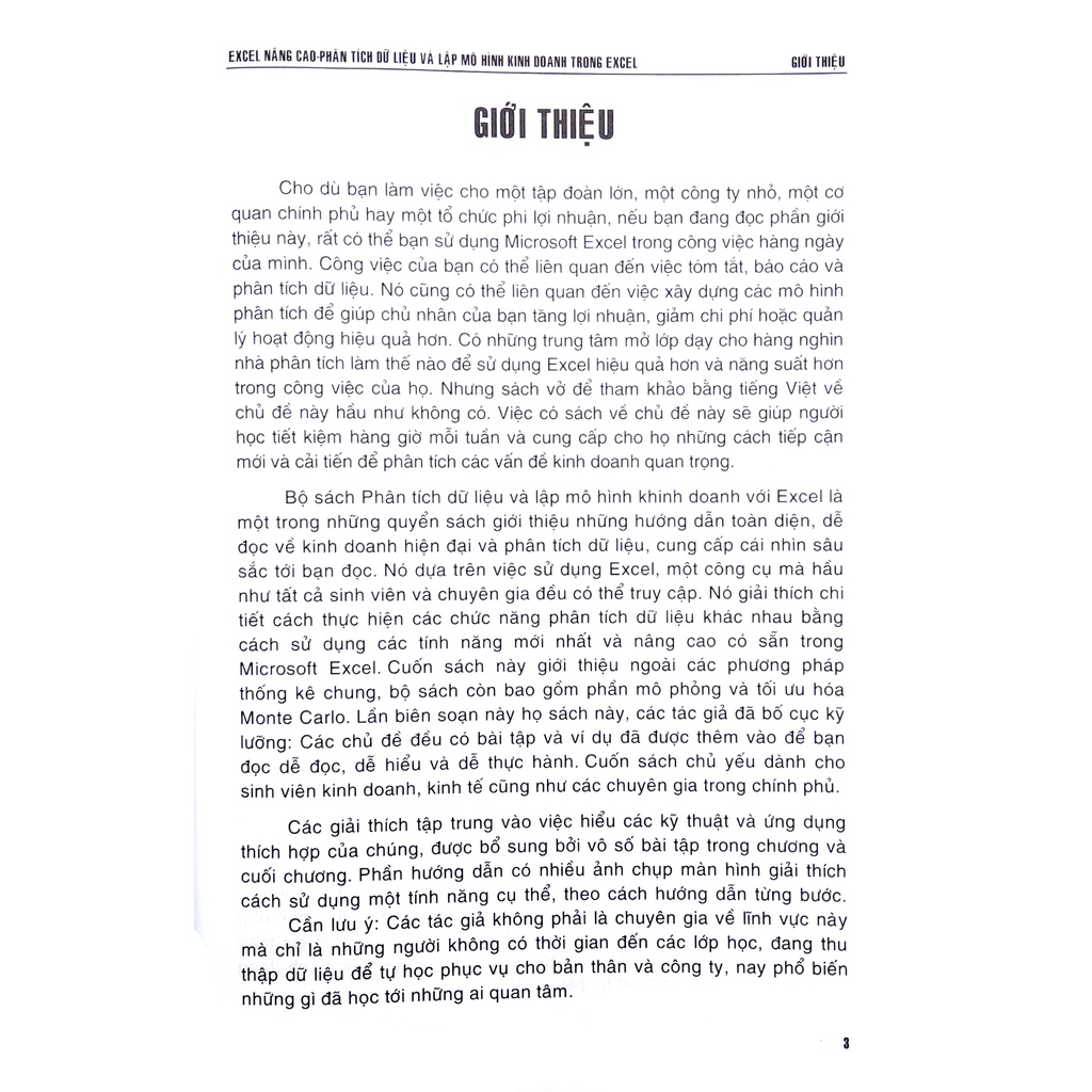 Bộ sách Phân tích dữ liệu và lập mô hình khinh doanh với Excel gồm 3 tập giới thiệu những hướng dẫn toàn diện, dễ đọc về kinh doanh hiện đại và phân tích dữ liệu, cung cấp cái nhìn sâu sắc tới bạn đọc. Nó dựa trên việc sử dụng Excel, một công cụ mà hầu như tất cả sinh viên và chuyên gia đều có thể truy cập. Nó giải thích chi tiết cách thực hiện các chức năng phân tích dữ liệu khác nhau bằng cách sử dụng các tính năng mới nhất và nâng cao có sẵn trong Microsoft Excel. Cuốn sách chủ yếu dành cho sinh viên kinh doanh, kinh tế cũng như các chuyên gia trong chính phủ.