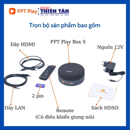 FPT Play Box S – Thưởng thức trải nghiệm đa kênh dễ dàng nhất Làm sao để có thể xem phim thỏa thích, trải nghiệm hàng ngàn bản nhạc đỉnh cao? Hãy tham khảo qua sản phẩm PlayBox S. Lắp ráp nhanh gọn, không dây rối như cáp, chắc chắn sẽ mang lại cho bạn những trải nghiệm tuyệt vời nhất. Thiết kế kết hợp giữa Tivi Box và loa, vỏ bọc sang trọng FPT PlayBox S sở hữu một thiết kế mới với hình khối tròn, bên trên được bọc vải mang đến sự tinh tế và sang trọng.       Hệ thống cổng kết nối trênPlay Box S cũng kha đa dạng với cổng Micro SD, cổng HDMI, cổng LAN, USB 3.0,... Ngoài ra thiết bị còn được trang bị hệ thống đèn báo giúp báo hiện các trạng thái kết nối.       Thưởng thức đa kênh phong phú, 3000 ứng dụng giải trí PlayBox S kết nối nhiều kênh truyền hình trong nước và cả quốc tế phong phú, đặc sắc như AXN, FOX Movies, FOX Sports,… Hay thậm chí là bạn có thể thưởng thức các giải thể thao độc quyền và hấp dẫn như giải Series A, FA Cup, Ngoại hạng Anh trên K+,…       Hơn nữa có đến 3000+ ứng dụng và trò chơi trên CH Play – nguồn tải ứng dụng phong phú nhất hiện nay. Đi kèm là hệ điều hành Android TV 10 đến từ Google chắc chắn sẽ giúp bạn trải nghiệm mượt mà và ổn định nhất. Điều khiển bằng giọng nói, phát triển hệ sinh thái Google FPT Play Box S lần này được nâng cấp lên kèm với tính năng vô cùng thông minh đó là điều khiển thiết bị bằng nhận diện giọng nói, tức bạn chỉ cần sử dụng lệnh giọng nói thì hệ thống sẽ nhận diện và phản hồi lập tức ngay cho bạn với phạm vi kết nối lên đến 5m.     Nâng cấp cấu hình mạnh mẽ – Chip xử lý AI – AML S905X3: Tăng tốc độ xử lý và hiệu năng lên 20% so với chip tiền nhiệm, Hỗ trợ NNA (Neural Network Accelerator) ứng dụng trong trí tuệ nhân tạo AI, nhất là điều khiển giọng nói từ xa giúp việc nhận giọng nói, xử lý ngôn ngữ chuẩn và chính xác.