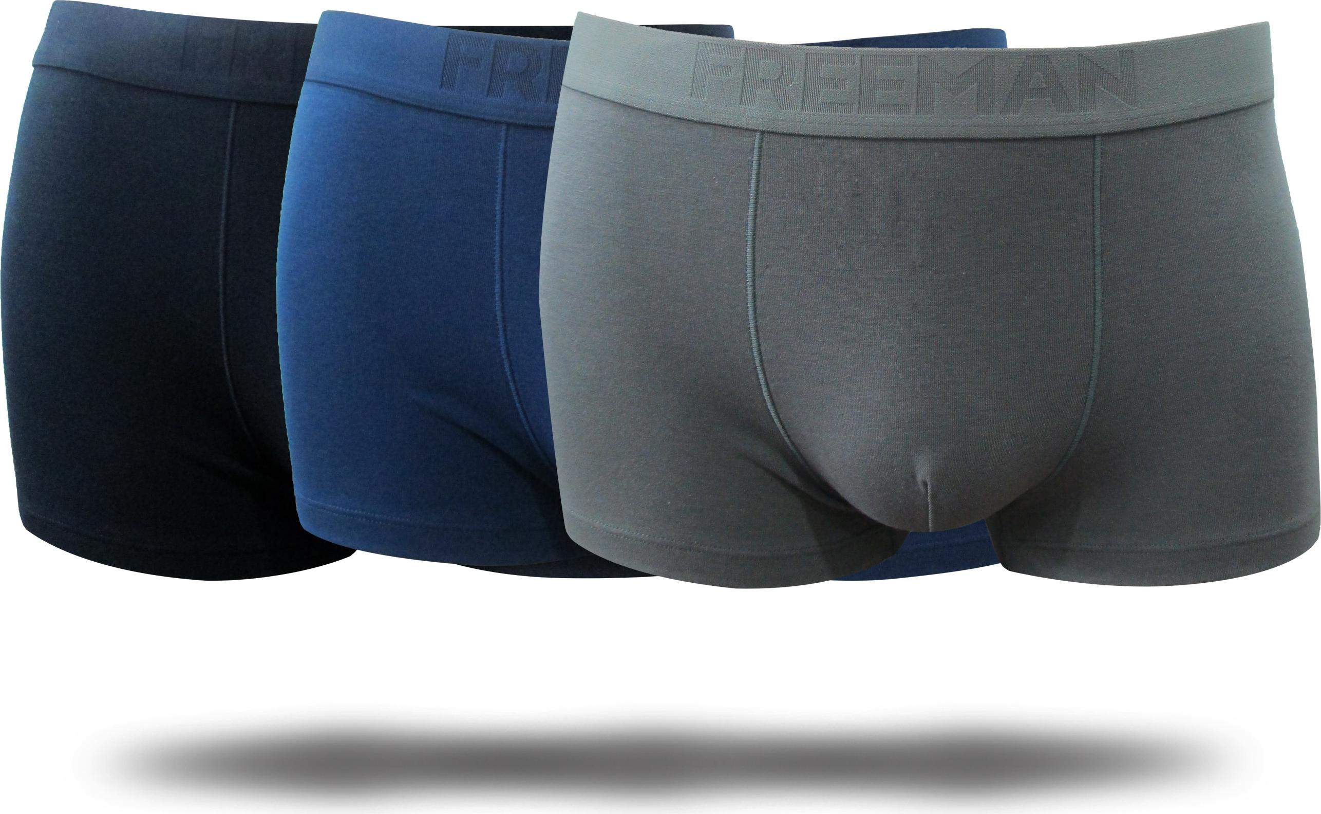 Quần Boxer Freeman - Sản phẩm chính hãng 100% thương hiệu Freeman - Quần vải Cotton TC Spandex, lưng thun in chữ Freeman. - Size: Gồm 03 size M, L, XL - Màu sắc: Xám
