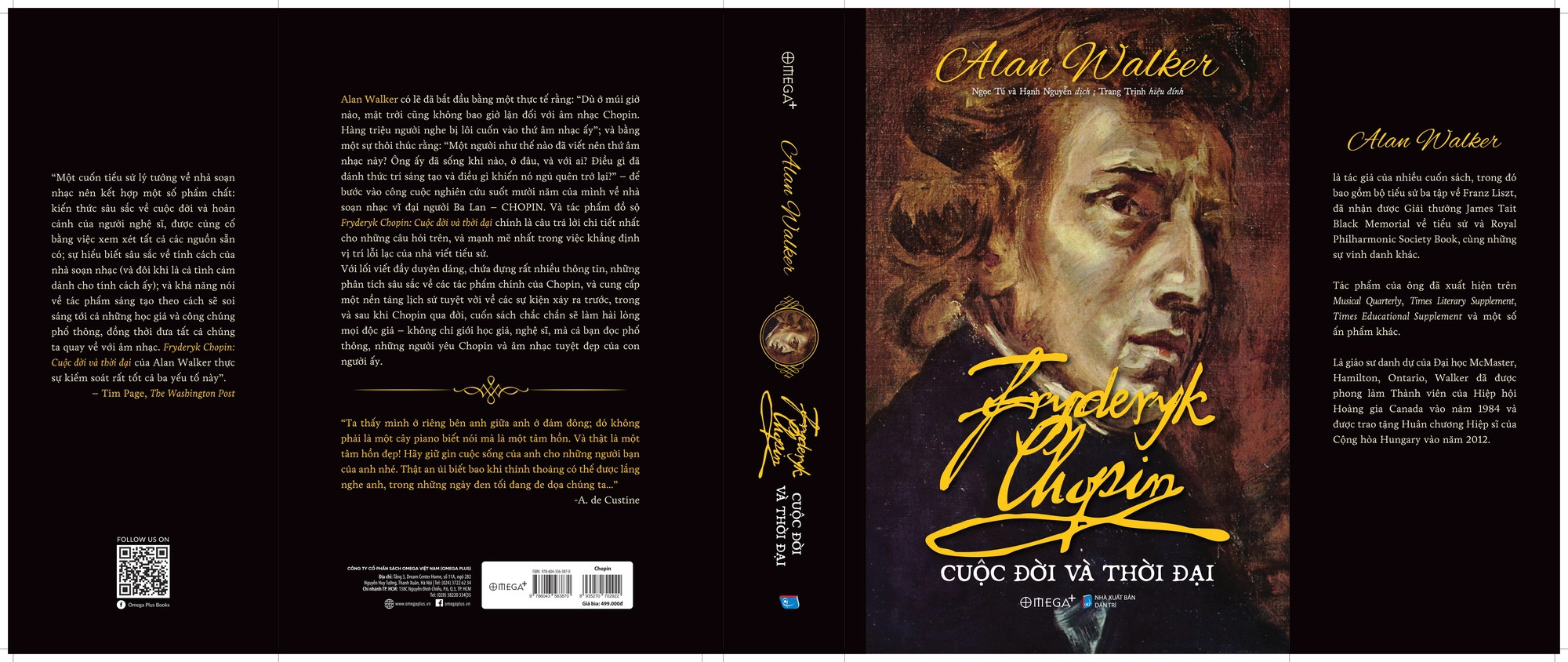 • Điểm nhấn: kết quả của trên 10 năm nghiên cứu ĐÁNH GIÁ/NHẬN XÉT CỦA CHUYÊN GIA Một cuốn tiểu sử lý tưởng về một nhà soạn nhạc chứa đựng những phẩm chất: kiến ​​thức sâu sắc về cuộc đời và hoàn cảnh của người nghệ sĩ, được củng cố bằng việc khảo sát lại tất cả các nguồn sẵn có; sự hiểu biết sâu sắc về tính cách của nhà soạn nhạc (và đôi khi có thể là những tình cảm dành cho tính cách ấy); và khả năng diễn đạt công việc sáng tạo theo cách sẽ gây ấn tượng với cả học giả và công chúng, đồng thời đưa tất cả chúng ta trở lại với âm nhạc. Fryderyk Chopin: A Life and Times của Alan Walker thực sự đã đạt được những điều trên. Đây hiện là cuốn tiểu sử hay nhất của Chopin - tỉ mỉ, uyên bác và được kể theo cách hay nhất. " -- Tim Page, The Washington Post TRÍCH ĐOẠN HAY Tôi muốn khẳng định một điều dù không thể chứng minh nhưng tôi chắc chắn đúng. Trong bán kính năm mươi km từ nơi tôi đang viết Lời mở đầu này, một người nào đó ở đâu đó đang chơi hoặc nghe nhạc Chopin. Nó cũng không phụ thuộc vào vị trí bàn viết của tôi — hiện được đặt gần Toronto. Chuyển nó đến New York, London, Berlin, Vienna, Moscow hoặc Bắc Kinh, và điều khẳng định ấy vẫn sẽ đúng. Dù ở múi giờ nào, mặt trời cũng không bao giờ lặn đối với âm nhạc Chopin. Hàng triệu người nghe bị lôi cuốn vào nó. Các đài phát thanh trên khắp thế giới phát sóng các sáng tác của ông. Doanh số các bản thu âm nhạc Chopin vẫn giữ vững phong độ, ngay cả khi những nhà soạn nhạc khác mất đi sự ái mộ. “Độc tấu Chopin” càng ngày càng được yêu thích, một kịch mục cố định trong phòng hòa nhạc. Các cuộc thi Chopin liên tục xuất hiện trên toàn cầu. Cuối cùng, và đáng chú ý nhất, Chopin đã trở thành biểu tượng của một quốc gia. Ông là người con trai lỗi lạc nhất của Ba Lan. Có nhà soạn nhạc nào khác mà người ta có thể nói về bằng những điều tương tự? Bữa tối được phục vụ vào lúc 5 giờ chiều và sau khi kết thúc, thời gian buổi tối có thể được dành cho việc giải trí. Sand thường có khách khứa đến chơi và khi không khí sau bữa ăn trở nên đặc biệt thoải mái, không khó để thuyết phục Chopin chơi piano và thậm chí chọc cười khán giả với những màn bắt chước nổi tiếng của mình. Sau khi mê hoặc họ với màn biểu diễn piano, anh cố ý phá bỏ sự quyến rũ anh vừa tạo ra. Liếc qua gương, anh chỉnh lại cà vạt, làm rối mái tóc, làm vài điệu bộ tương ứng khiến khán giả phải bật cười với màn bắt chước của mình, theo như lời của Sand “một người Anh lạnh lùng, một người già lạc lõng, một quý bà Anh đa cảm hoặc một tay Do Thái hám lợi. Họ thuộc kiểu đáng thương nhưng hài hước và được thể hiện hoàn hảo đến nỗi mọi người bị thu hút vào màn đó của anh ấy mà không biết chán”. Chính Chopin là người bắt đầu truyền thống diễn kịch và kịch câm ở Nohant với những màn diễn được ứng biến và có đủ vai cho bất kỳ ai muốn tham gia. Các trò giải trí này cuối cùng đã truyền cảm hứng cho Maurice Sand lập nên Nhà hát múa rối Nohant, với dàn nhân vật được lấy ra từ các vở hài kịch ứng tác cũ (commedia del,l’arte) - trong số đó có Arlecchino, Pantalone, Il Dottore và Zanni. Việc sáng tác của anh ấy rất ngẫu hứng, kỳ diệu. Anh ấy có được những ý tưởng mà không phải tìm kiếm chúng, không cần dự đoán về chúng. Chúng đến trên cây đàn piano của anh, bất chợt, hoàn thiện, tuyệt mỹ hoặc ngân lên trong đầu khi anh đi dạo và anh phải chạy vội về, quăng mình vào cây đàn để bản thân lắng nghe chúng. Nhưng sau đó sẽ bắt đầu một quá trình lao động đau lòng hơn mọi thứ tôi đã từng chứng kiến. Đó là một chuỗi những nỗ lực để nắm bắt lại một số chi tiết nào đó của các chủ đề mà anh ấy vừa nghe trong sự bất lực và thiếu kiên nhẫn: những gì anh ấy hình dung về tổng thể được phân tích quá mức trên giấy và sự lo ngại việc ghi chép lại không đầy đủ (theo như ý anh ấy) đã ném anh vào sự tuyệt vọng. Anh giam mình trong phòng cả ngày, rên rỉ, đi lại, bẻ gãy bút, lặp lại hoặc thay đổi ô nhịp hàng trăm lần, liên tục viết ra rồi lại xoá đi và làm lại từ đầu vào ngày hôm sau với sự tỉ mỉ và kiên nhẫn kinh khủng. Anh mất sáu tuần cho một trang nhạc, chỉ để trở lại và viết những gì anh có trong bản nháp đầu tiên. THÔNG TIN THÊM Cuốn sách nhạc cổ điển của năm 2018 do tờ The Sunday Times (Vương quốc Anh) bình chọn. Một trong những Sách hay nhất năm 2018 do tờ The Economist bình chọn VỀ TÁC GIẢ Alan Walker Ông là Giáo sư danh dự tại Đại học McMaster từ năm 1995; Tiến sĩ Walker được phong làm Thành viên của Hiệp hội Hoàng gia Canada vào năm 1986 và được trao tặng Huân chương Hiệp sĩ của Cộng hòa Hungary vào năm 2012. Bài viết của ông đã xuất hiện trên các tạp chí như The Musical Quarterly, Times Literary Supplem