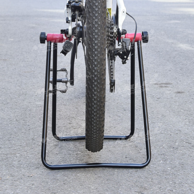 Giá đỗ xe đạp chân chóng cố định chữ U móc đỏ giúp dựng đứng xe đạp để sửa chữa/ bảo dưỡng, khung kim loại, móc nhựa ABS (1 cỡ có điều chỉnh) - Mai