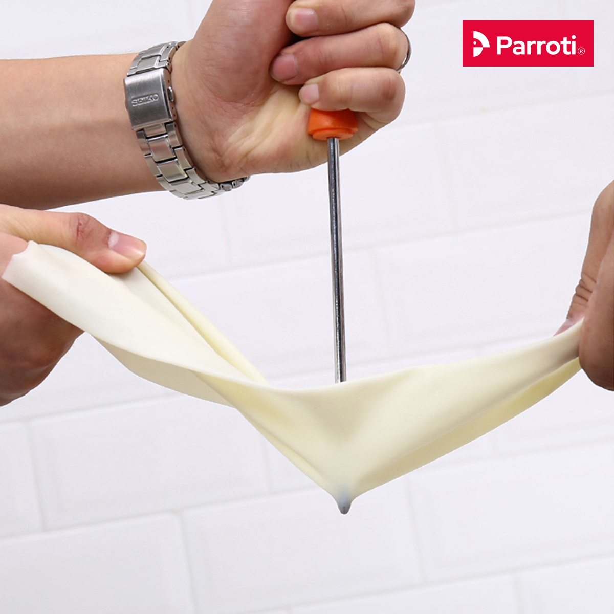 Mua tại TiktokGăng tay cao su Parroti Active được làm từ Nitrile (làm găng tay y tế) vừa có tính chất an toàn với người dùng vừa có tính siêu dai và bền. Khác với loại thông thường có mùi hôi của nhựa và hóa chất, bao tay Parroti hoàn toàn an toàn dùng để rứa chén, nấu ăn, giặt giữ và vệ sinh nhà cửa.