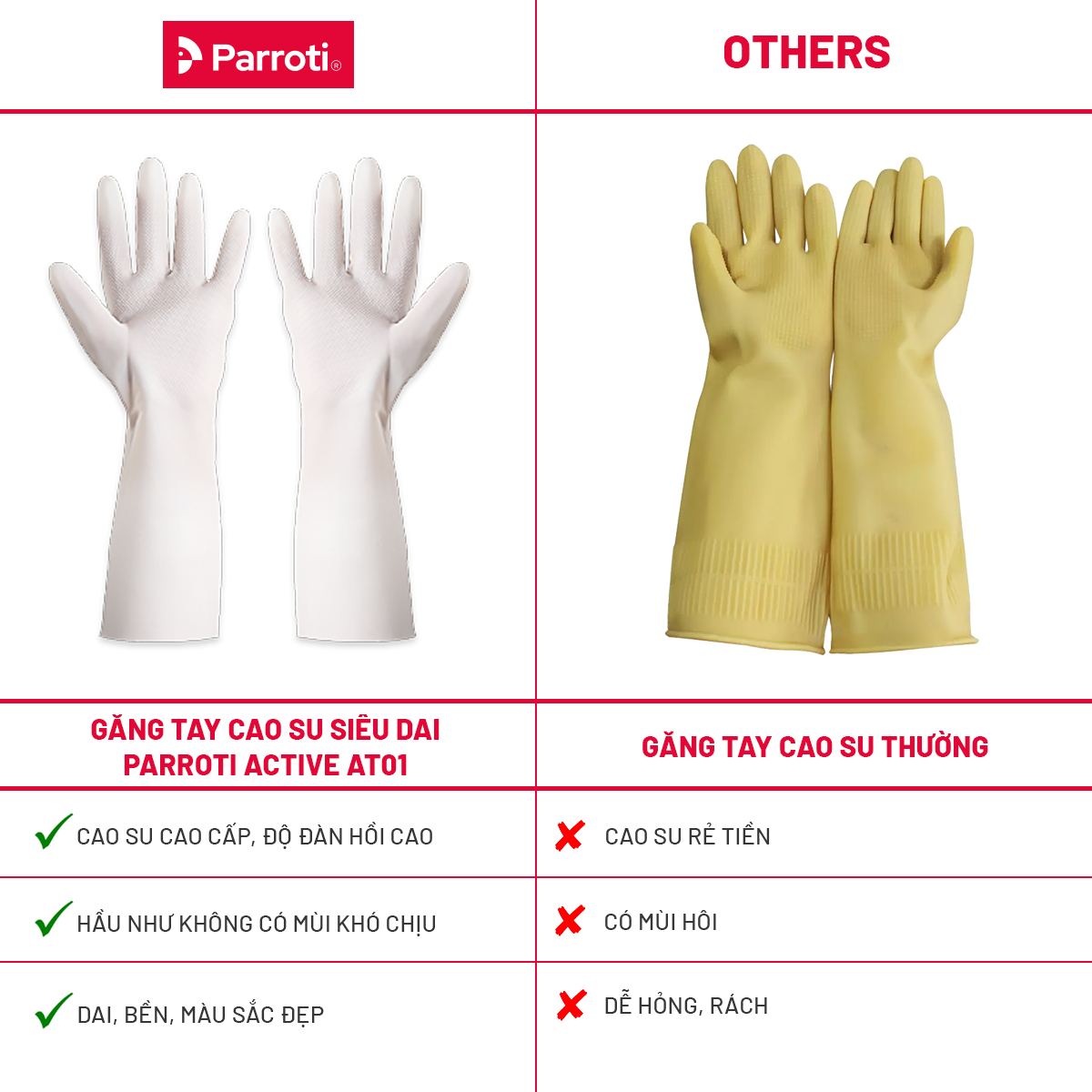 GĂNG TAY CAO SU SIÊU DAI, BAO TAY RỬA CHÉN, GIẶT GIŨ, AN TOÀN, KHÔNG MÙI HÔI – PARROTI ACTIVE AT01