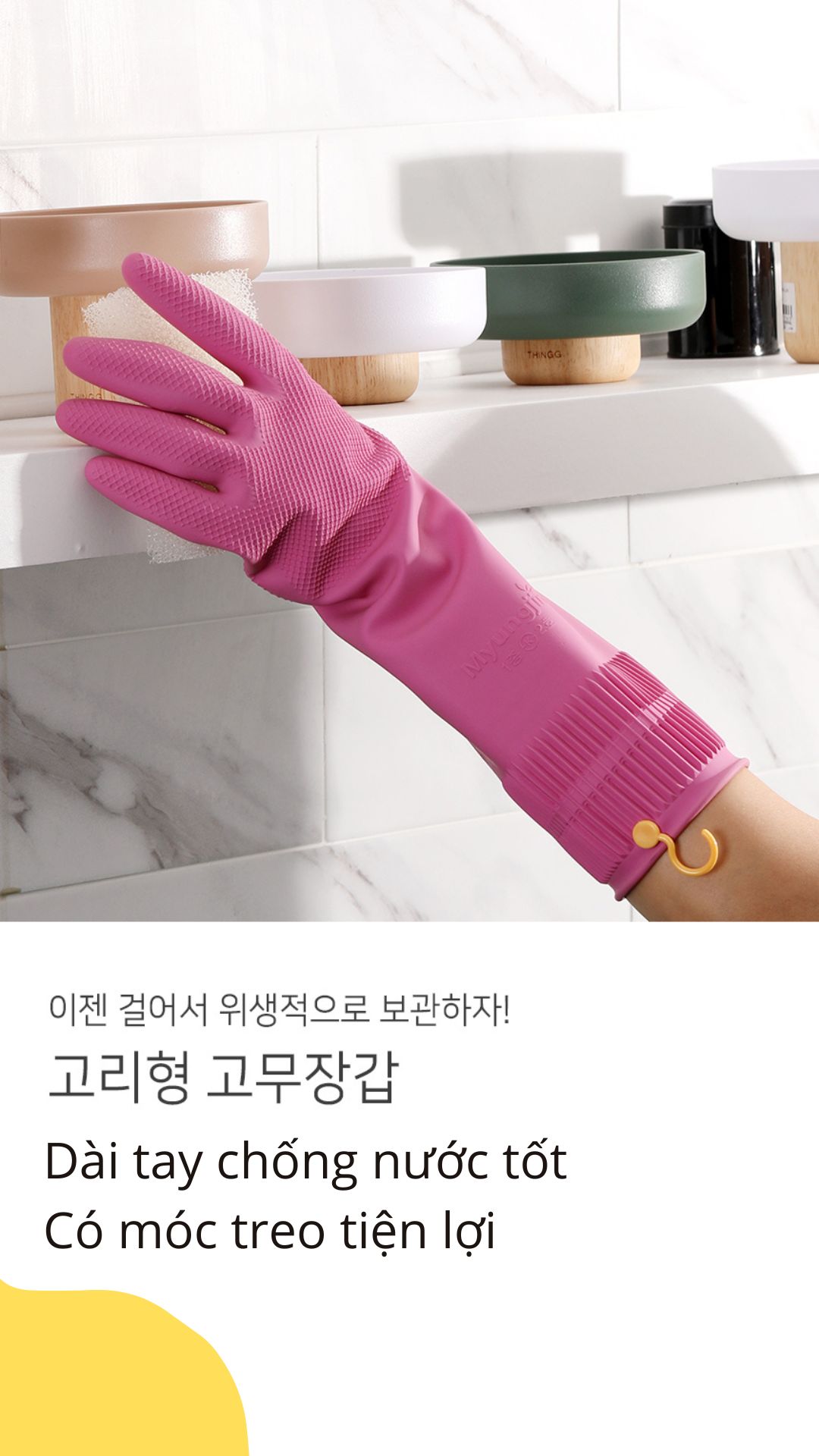Găng tay cao su rửa chén nhà bếp xuất Hàn Quốc siêu dai có móc treo L-38cm - Thương hiệu: MJ- Hàn Quốc - Xuất sứ thương hiệu: Hàn Quốc - Sản xuất tại: Việt