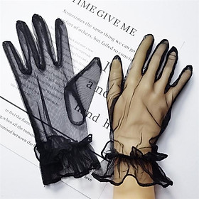 Găng tay cô dâu voan đen bèo cổ tay sang chảnh
