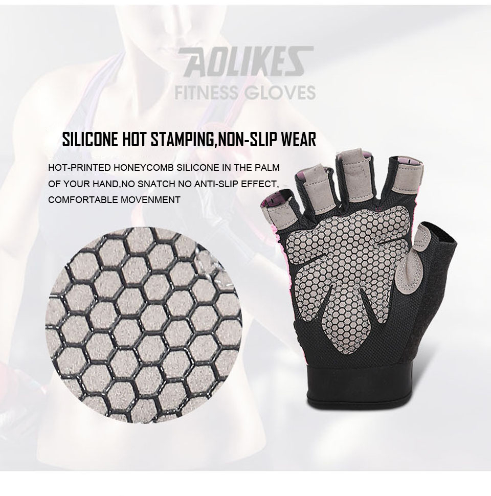 AOLIKES 113 - 1 đôi -Găng tay tập gym hở lưng có đệm lòng bàn tay chống trượt chuyên gym-chính hãng