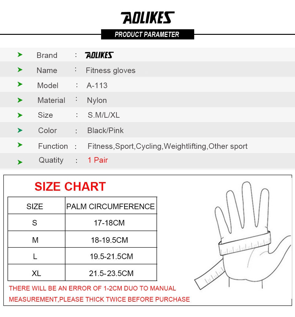 Găng Tay Nửa Ngón Tập Gym, Tập Tạ Tích Hợp Quấn Cổ Tay Aolikes AL113B 113 AL113 (1 đôi) - Chính Hãng Aolikes ---- BẢNG SIZE TRONG PHẦN HÌNH ẢNH ----- - Cách chọn size
