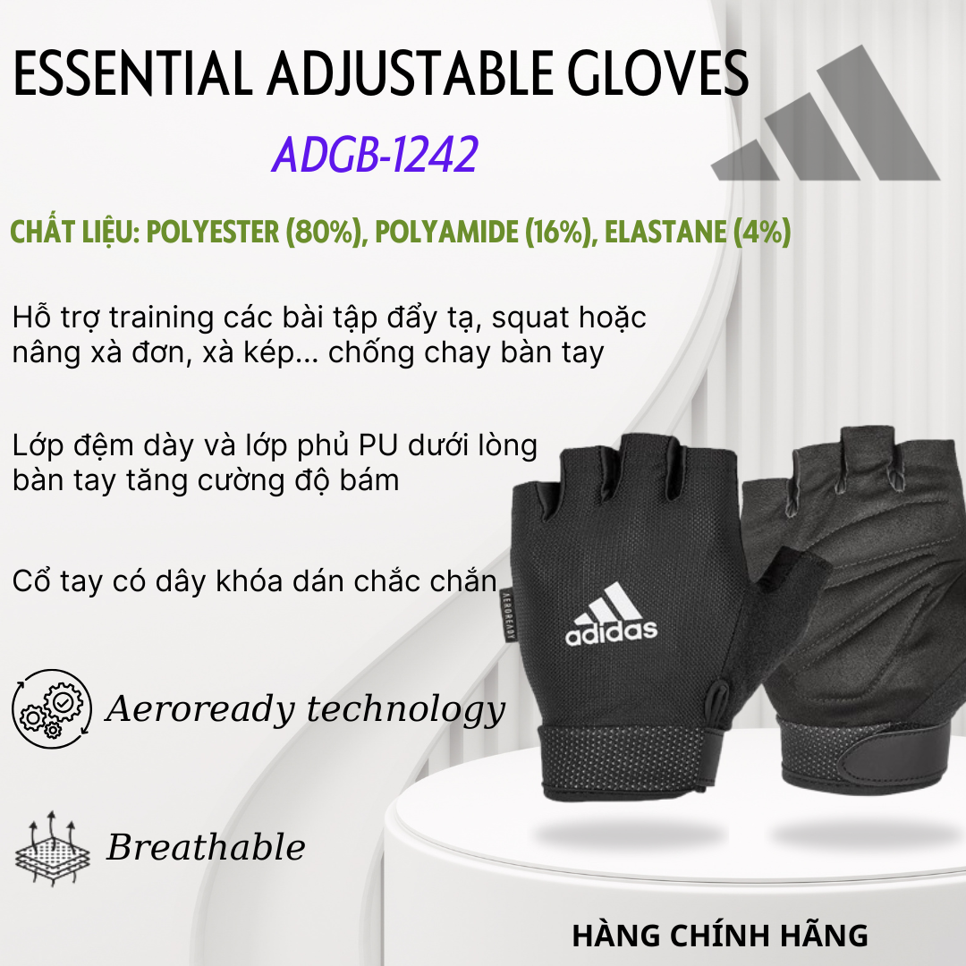✨Găng Tay Thể Thao Chính Hãng ADIDAS ADGB-1242 Essential Adjustable Gloves - Tập Fitness, Gym, Yoga