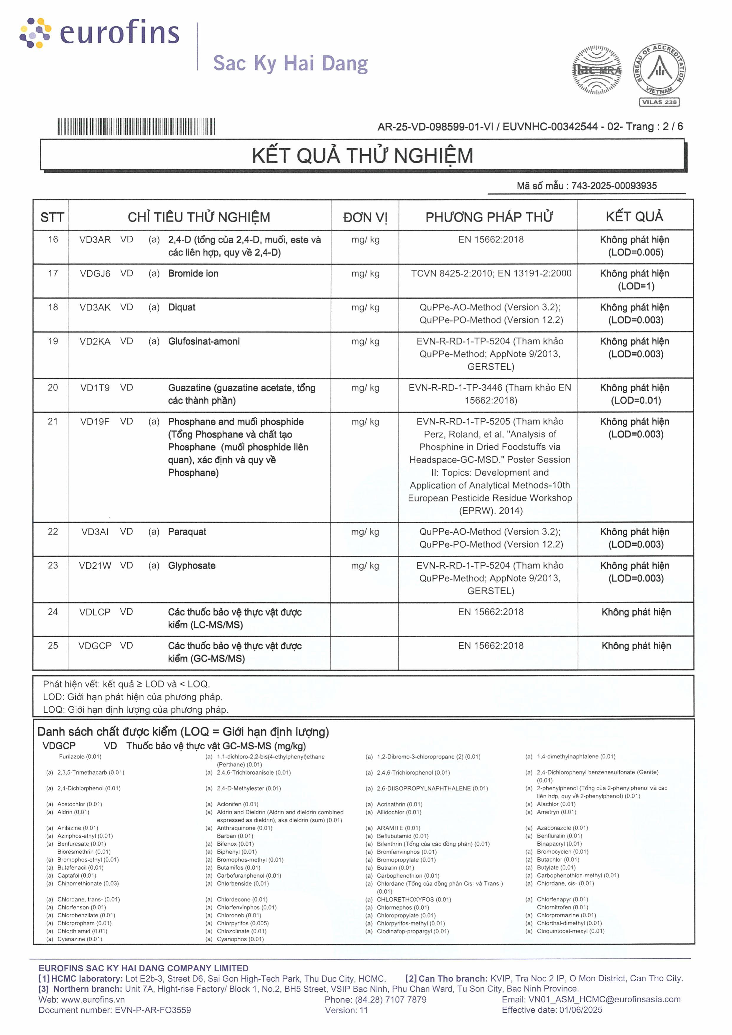 - Đáp ứng các tiêu chuẩn về dư lượng thuốc bảo vệ thực vật, kim loại nặng và các chỉ tiêu an toàn thực phẩm khác của Liên minh Châu Âu (EU) (Xin vui lòng xem kết quả thử nghiệm của Eurofin đính kèm)
