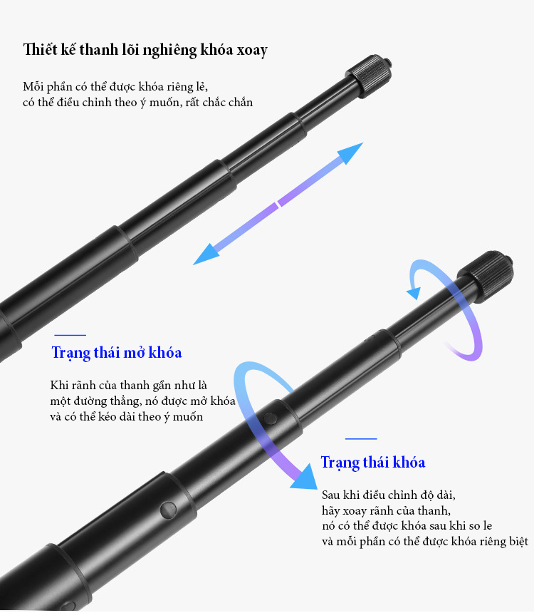 - Thuận tiện điều chỉnh chiều dài của gậy.