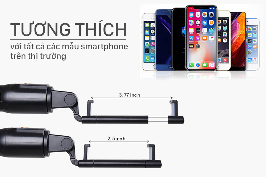 Gậy chụp ảnh quay video 3 chân có đèn led trợ sáng Gậy tự sướng selfie chụp hình bluetooth điều khiển từ xa xoay nhiều góc độ loại tốt Đặc điểm nổi bật: - Chụp ảnh bluetooth đến 10 mét - Gậy chụp ảnh 3 chân tripod tiện lợi - Xoay điện thoại ngang dọc linh hoạt - Gấp gọn, co dãn điều chỉnh điện thoại thông minh - Phù hợp nhiều loại điện thoại hiện nay Lưu ý : Bên shop có 2 phân loại gồm : Gậy có đèn và Gậy không đèn ( Qúy khách đặt hàng chú ý chọn đúng phân loại cần mua ạ ) Chi tiết sản phẩm: 1. Loại có đèn led trợ sáng (bản nâng cấp): - Có điều khiển blueetooth, có xoay được điện thoại ngang, dọc, gập lên gập xuống - Có đèn led trợ sáng sạc điện (đã kèm sạc USB) - Với ưu điểm có đèn sẽ giúp bạn tăng sáng cho bức ảnh hoặc video bạn quay có độ sáng hơn và đẹp hơn hẳn - Màu sắc: Đen - Chất liệu: nhựa ABS+ inox - Pin: Cr1632 - Kích thước: chiều dài tối đa đạt 100cm - Điều khiển: sử dụng remote Bluetooth điều khiển từ xa khoảng cách lên đến 10 mét 2. Loại thường (không có đèn trợ sáng): - Có điều khiển blueetooth, có xoay được điện thoại ngang, dọc, chốt vặn gập lên xuống - Màu sắc: Đen - Chất liệu: nhựa ABS+ inox - Pin: Cr1632 - Kích thước: chiều dài tối đa đạt 100cm - Điều khiển: sử dụng remote Bluetooth điều khiển từ xa khoảng cách lên đến 10 mét 4. Gậy chụp ảnh XT-02 - Mã : XT02 - Có điều khiển blueetooth, có xoay được điện thoại ngang, dọc, gập lên gập xuống - Chất liệu: nhựa ABS+ inox - Màu sắc: Đen - Pin: Cr1632 - Kích thước: chiều dài tối đa đạt 80cm