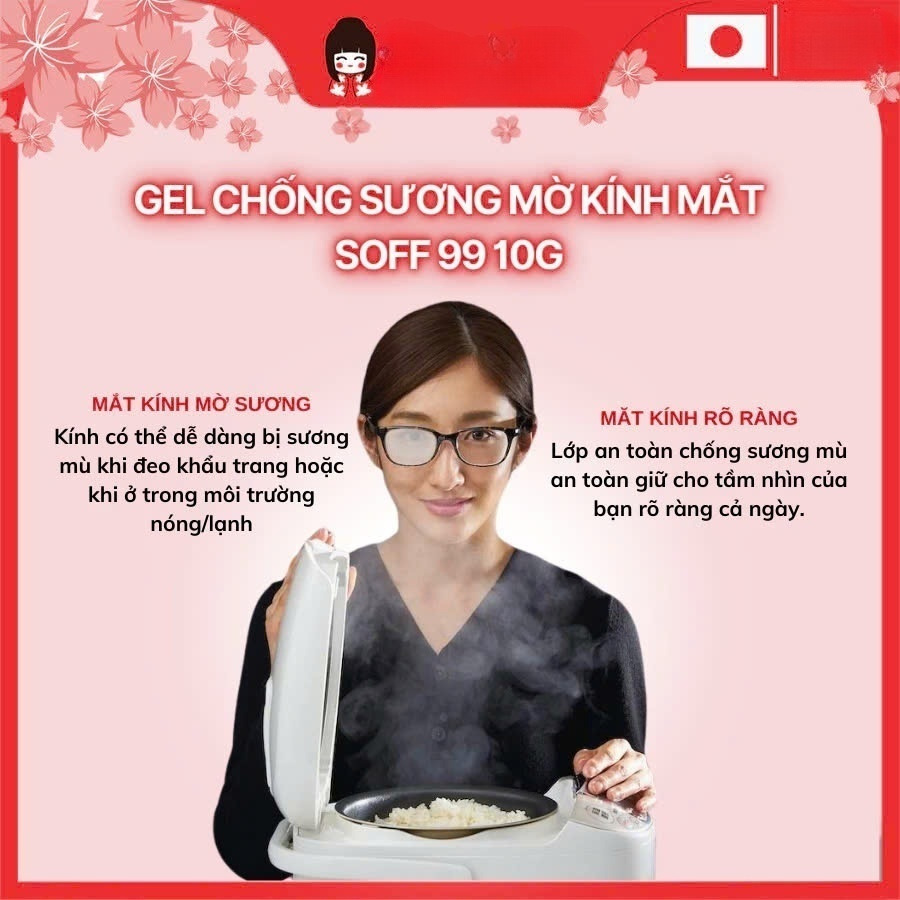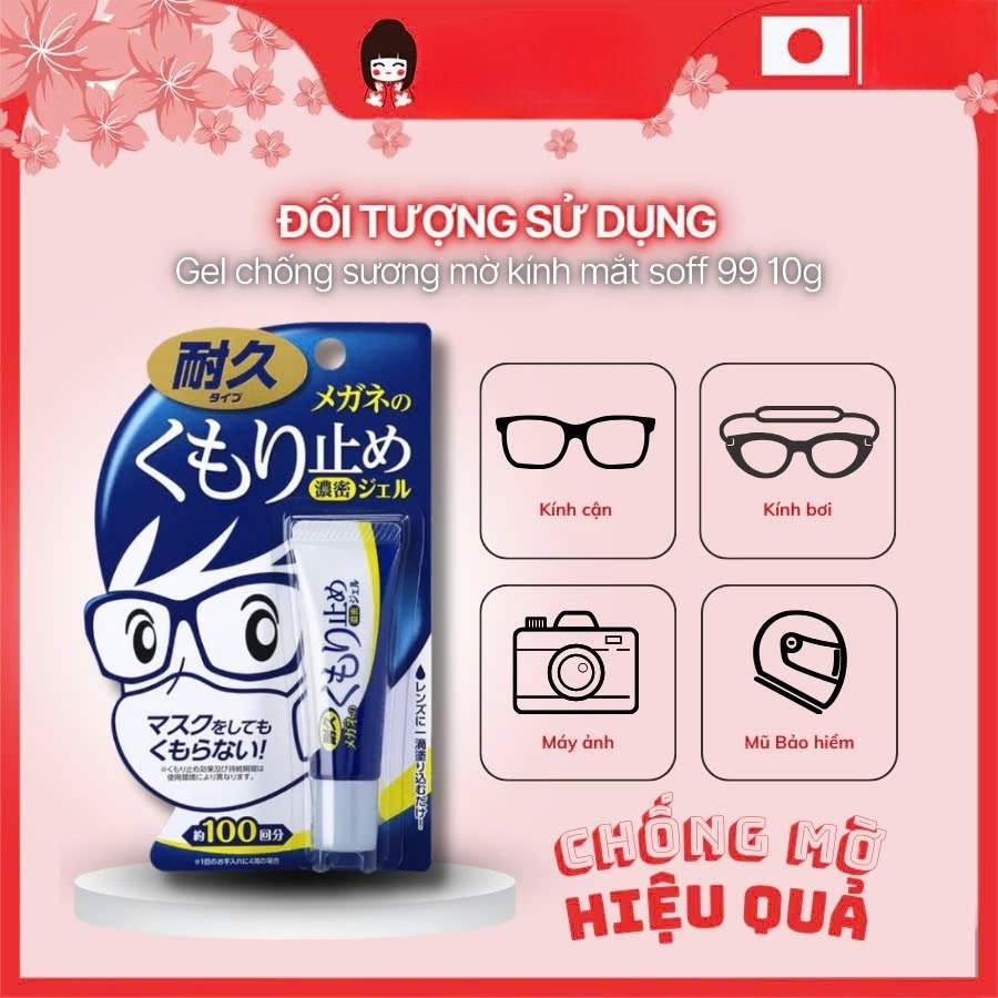 Gel chống sương mù dành cho kính có thể làm tan sương mù khi đeo mắt kính. Có thể sử dụng kính ngay sau khi bôi gel mà không cần phải chờ khô.