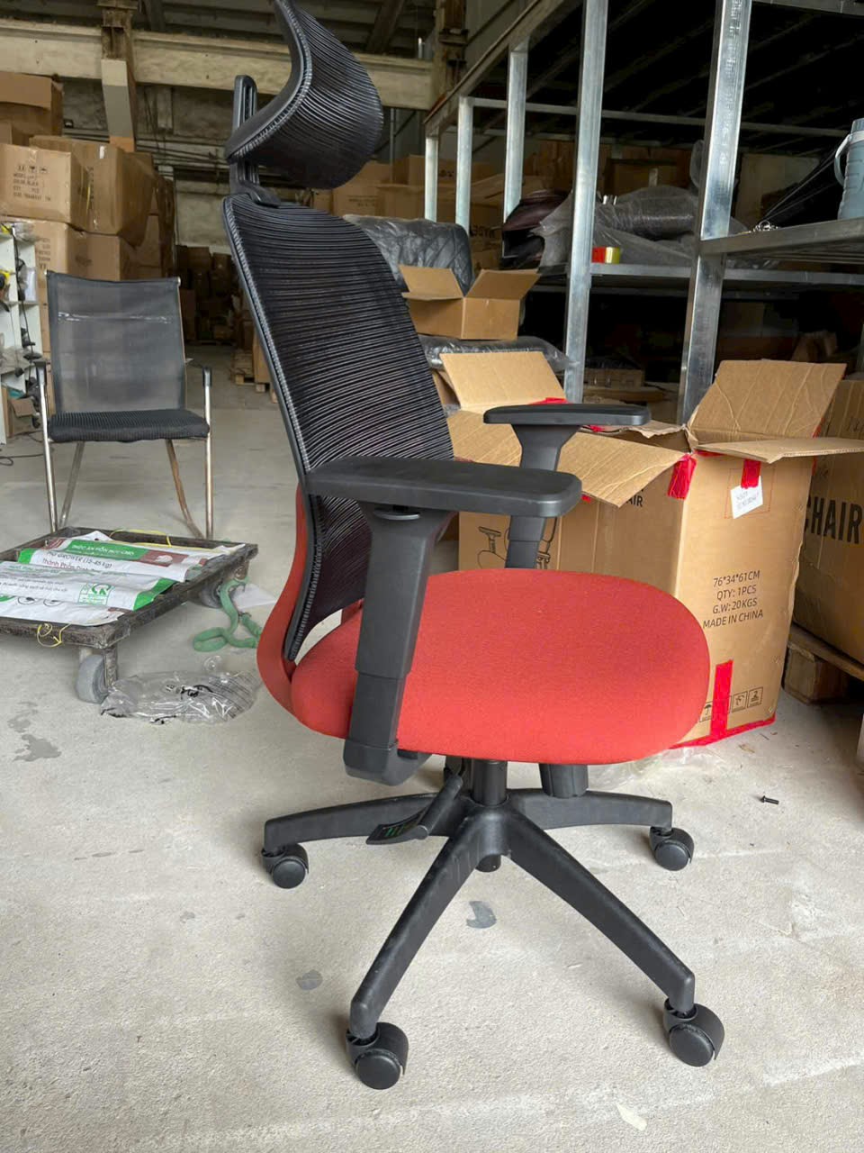 Kích thước: W49-58 x D47 x H92-104 cm (Cao tổng). H từ ngồi đến lưng: 48 cm, H Tay: 64-76 cm, H đất-ngồi: 48-60 cm (Lúc Ben thấp – Ben cao) Chất liệu: lưng rời,