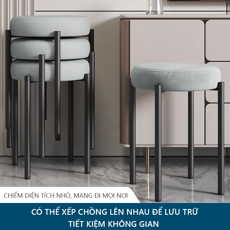 Bộ sản phẩm gồm: - 4 ghế đôn ngồi được bọc bằng chất liệu vải nỉ mát kiểu tròn làm thon gọn cho phòng khách nhỏ, tiện dụng, có thể làm đôn ngồi chơi, ngồi