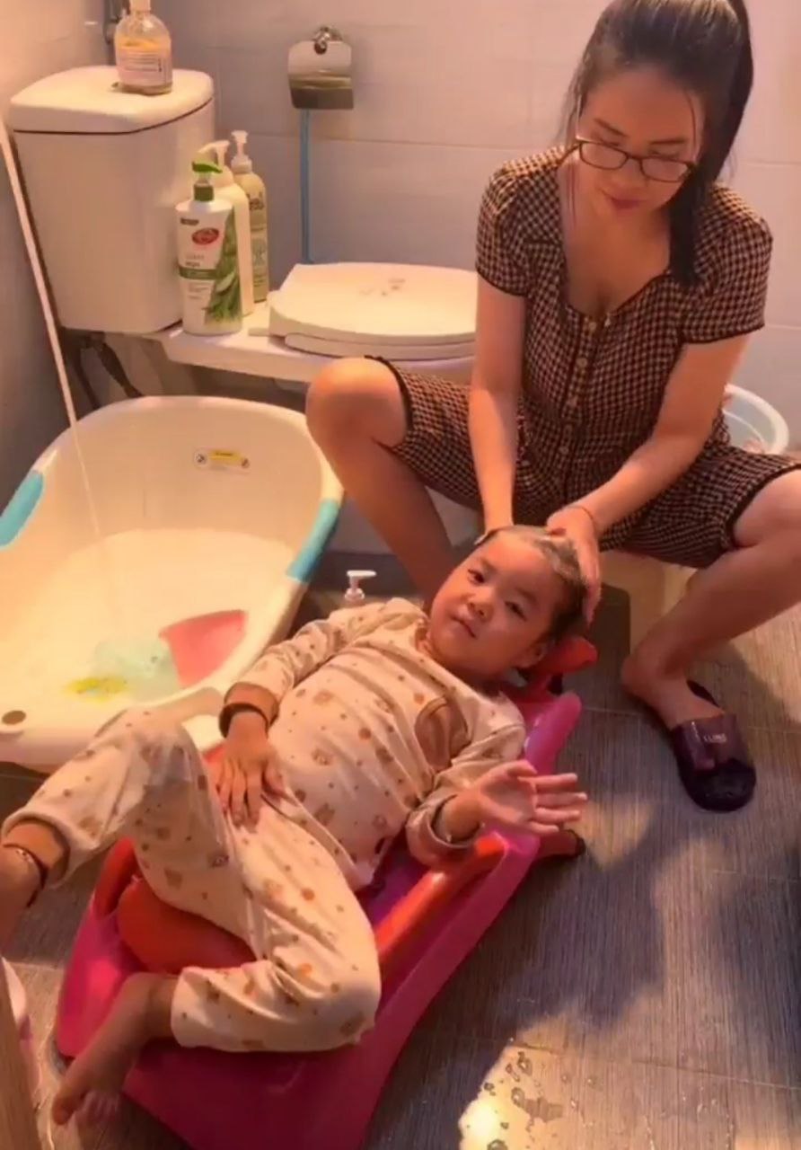 - Bước 1 : Trải 1 tấm khăn bên dưới phần đỡ cổ. - Bước 2 : Cho bé nằm lên ghế gội đầu Việt Nhật - Bước 2 : Điều chỉnh phần đỡ hông và chân ghế theo các mức để bé có tư thế thoải mái nhất. - Bước 3 : Quấn khăn lên cổ của bé để nước không làm ướt áo của trẻ. - Bước 4 : Bắt đầu làm ướt tóc và gội đầu cho bé.