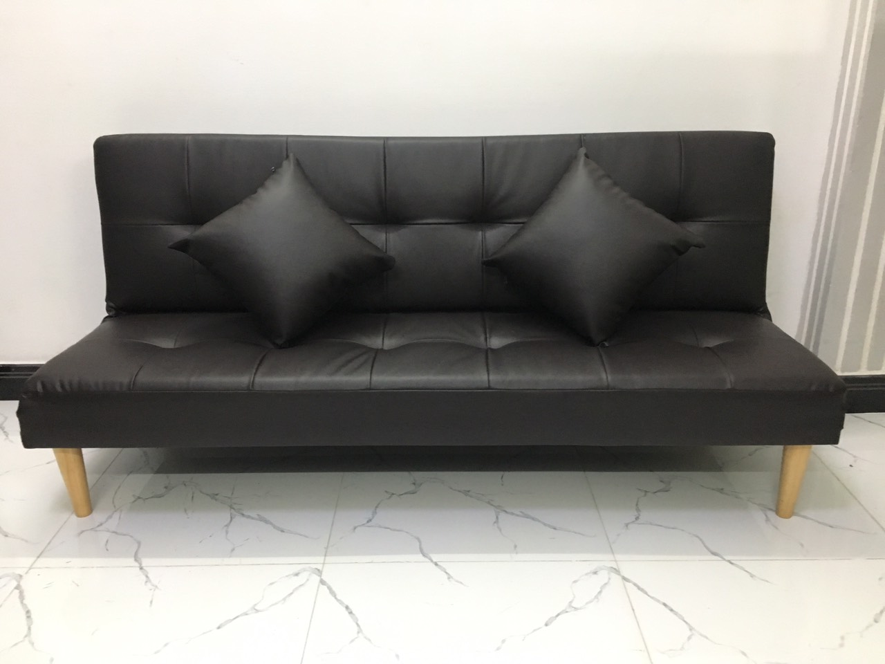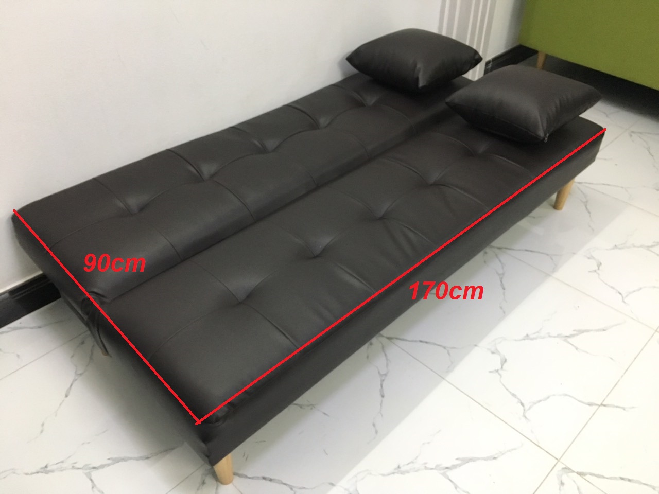 Sofa bed, sofa giường 1m7x90, có thể bật ra thành giường để nằm Kích thước 1m7x90 (kích thước phổ thông) Chất liệu: khung gỗ dầu, mút d30, simili Bao gồm: ghế dài 1m7x90, 2 gối